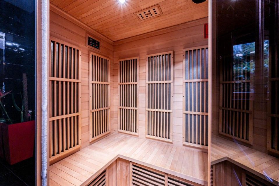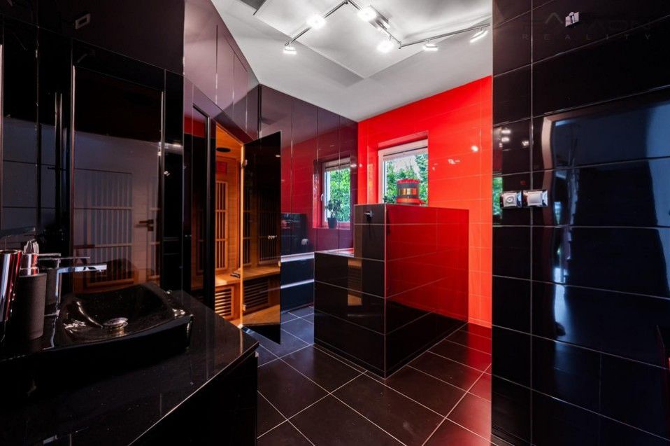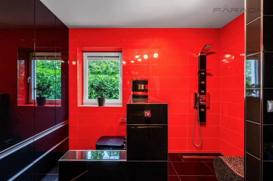 Vytápění domu zajišťuje zcela nové moderní tepelné čerpadlo a plynový kotel s podlahovým vytápěním v přízemí. Okna jsou plastová s hliníkovými rámy a elektrickými žaluziemi. V domě jsou tři prostorné vestavěné šatny a dvě koupelny vybavené luxusními prvky, včetně sauny, hydromasážní vany a vyhřívací lavice ve sprše. Exteriér doplňuje vyhřívaný a zastřešený bazén o rozměrech 6x3 metry a dětský domek o velikosti cca 25 m. Dům je připojený na městský vodovod, kanalizaci.