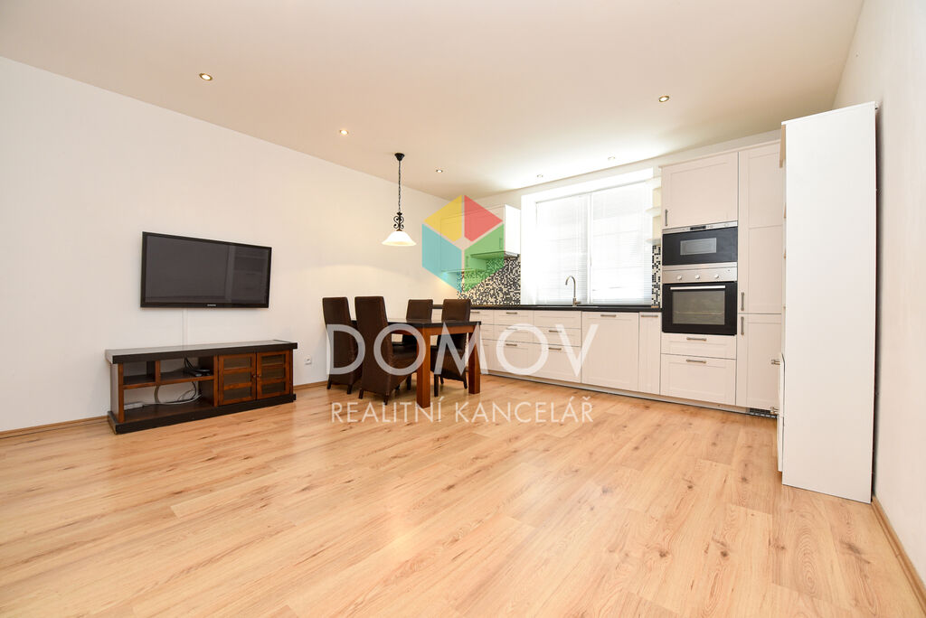 1. NP: Vstupní chodba, světlá kuchyně s oknem a moderní linkou včetně spotřebičů, na kterou navazuje prostorný obývací pokoj. Dále ložnice, komora a koupelna.