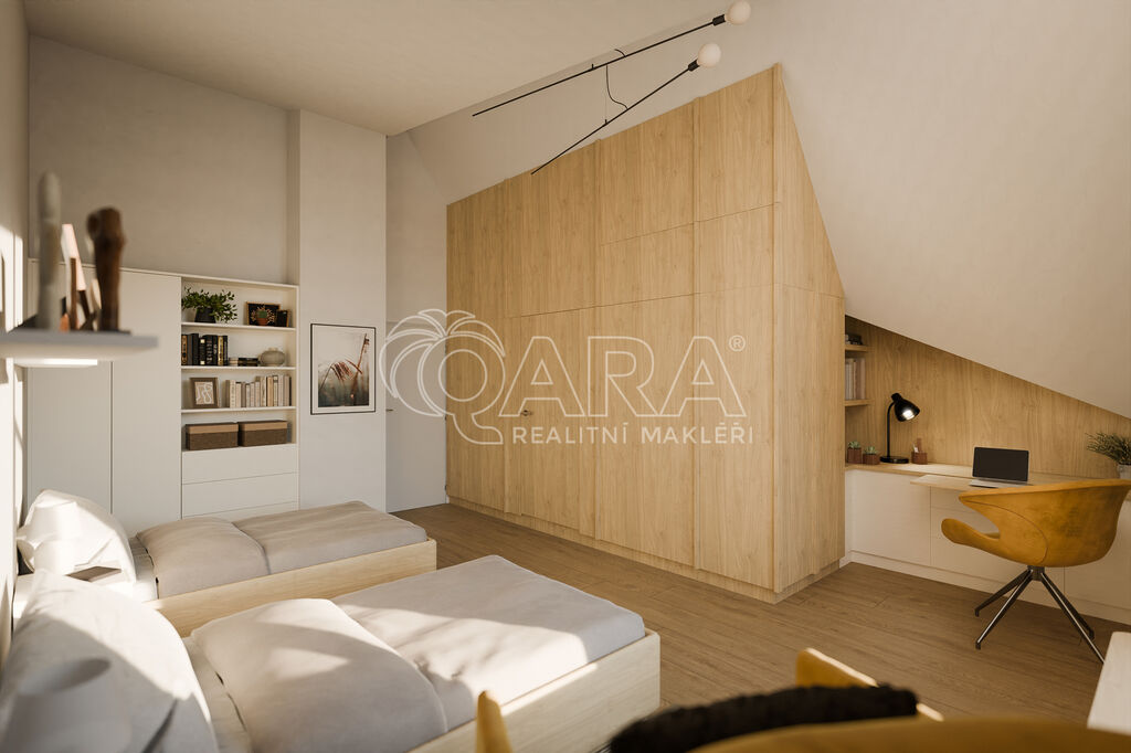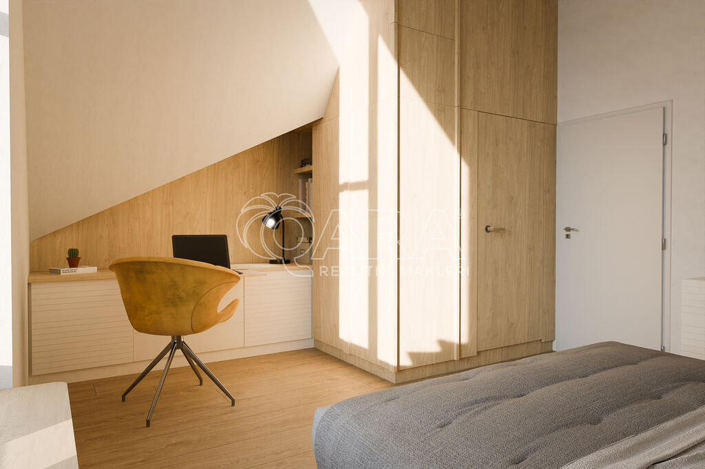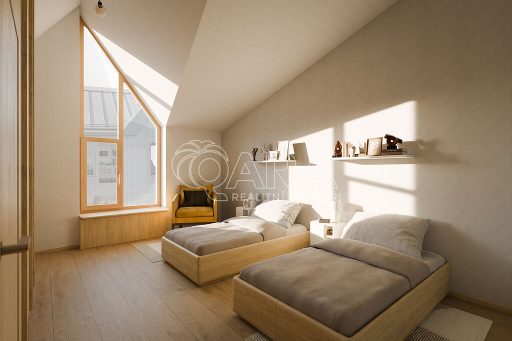 Nabízíme Vám výjimečný mezonetový apartmán – „dům v domě“ – o dispozici 3+kk a podlahové ploše 111,91 m². K apartmánu náleží garáž o výměře 17,85 m² s kvalitními výklopnými vraty Hörmann.