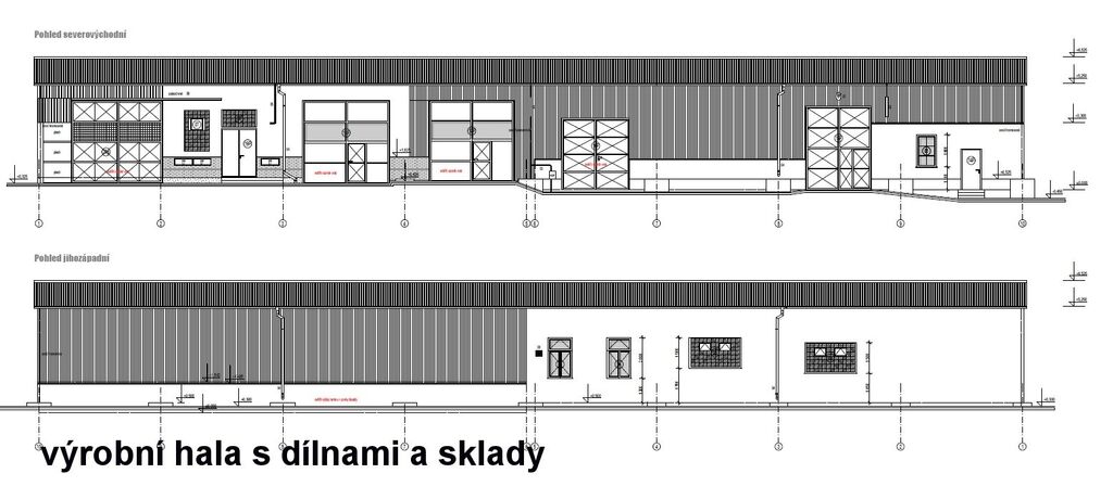 Ocelová výrobní a skladová hala se zateplenou střechou má užitnou plochu 555 m2 a je tvořena kanceláří, výrobní částí, skladem PHM, dílnou s montážní jámou a dalšími 2 dílnami. K této hale započala přístavba další výrobní haly pro kovovýrobu (172 m2) a skladové haly (299 m2), která by mohla být řešena jako dvoupodlažní s výškou stropů cca 3 metry.