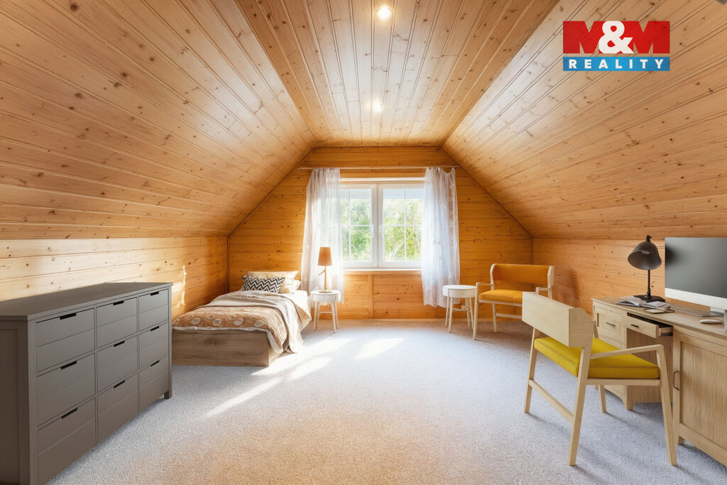 V přízemí se nachází světlý obývací pokoj s kuchyňským koutem, samostatná ložnice, koupelna s toaletou a technická místnost. V patře jsou čtyři pokoje, samostatné WC a půda.