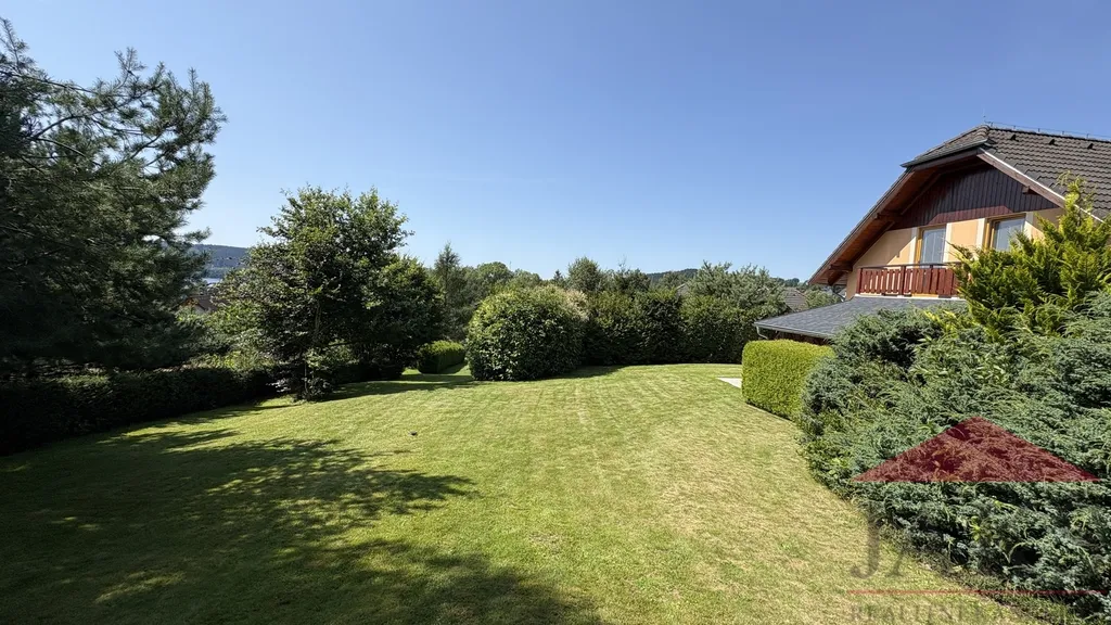 Exkluzivně vám nabízíme na prodej zateplenou dřevostavbu „typu gamma“ rodinného domu (6+kk se zastřešenou terasou; 11 lůžek; 3 koupelny; sauna; podl. pl.: 176 m2; kolaudace 2009) s garáží, 4 parkovacími místy, úžasným výhledem a oplocenou pěstěnou zahradou 934 m2 se vzrostlou okrasnou zelení, zaručující absolutní soukromí, stojící hned vedle areálu Kramolín se sjezdovkou, stezkou v korunách stromů a bobovou dráhou v klidné části Slupečná (850 m.n.m; Villapark Lipno Dreams) na Lipně nad Vltavou, který prošel v r. 2022 zevrubnou renovací (nová fasáda; vydlážděná 4 parkovací stání; zastřešená terasa; renovace balkonů, zábradlí a všech dřev. prvků; kuchyňská linka; ker. dlažba v garáži; kompletní nábytek; krbová kamna; rekultivace zahrady) a je střežen kamerovým systémem.