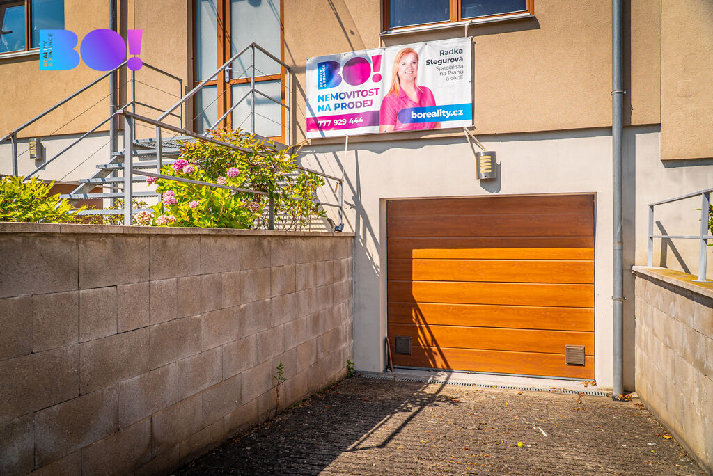 V domě jsou nezvykle velké a dobře rozmístěné úložné prostory. Vjezd do prostorné dvougaráže zajišťují rolovací vrata – i po zaparkování dvou aut zde bez potíží umístíte další motocykl nebo kolo. Dům je kompletně napojen na sítě, vytápění a ohřev vody zajišťuje úsporný plynový kotel.