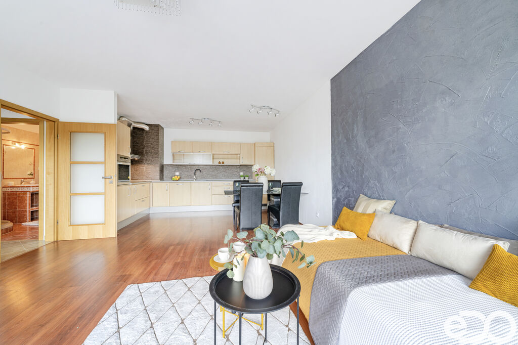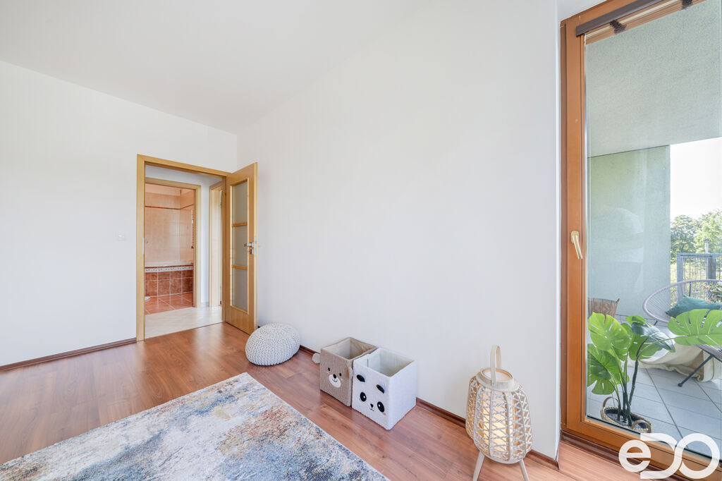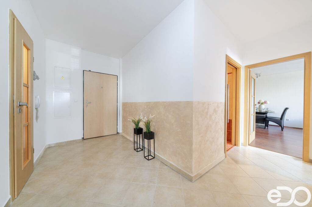 Hlavní výhodou bytu je jeho prostorná dispozice, krásná koupelna a velká terasa s výhledem do zeleně. Na terase se vstupem z obývacího pokoje si můžete užívat klidné chvíle s rodinou na čerstvém vzduchu nebo si vychutnávat v klidu ranní kávu.