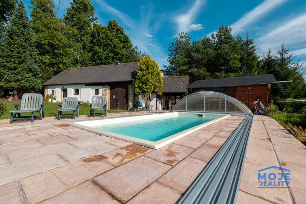 okolní pachtované louky (3 ha) umožňují naprosté soukromí, prostor pro chov koní či volnočasové využití