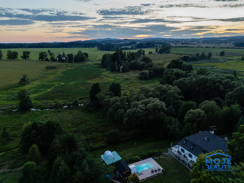 Nabízíme k prodeji unikátní areál bývalé fary z roku 1797 po rozsáhlé rekonstrukci, který se proměnil ve venkovskou rezidenci. Nemovitost se nachází na okraji obce v přírodě Českého lesa, jen pár kilometrů od hranic s Německem.