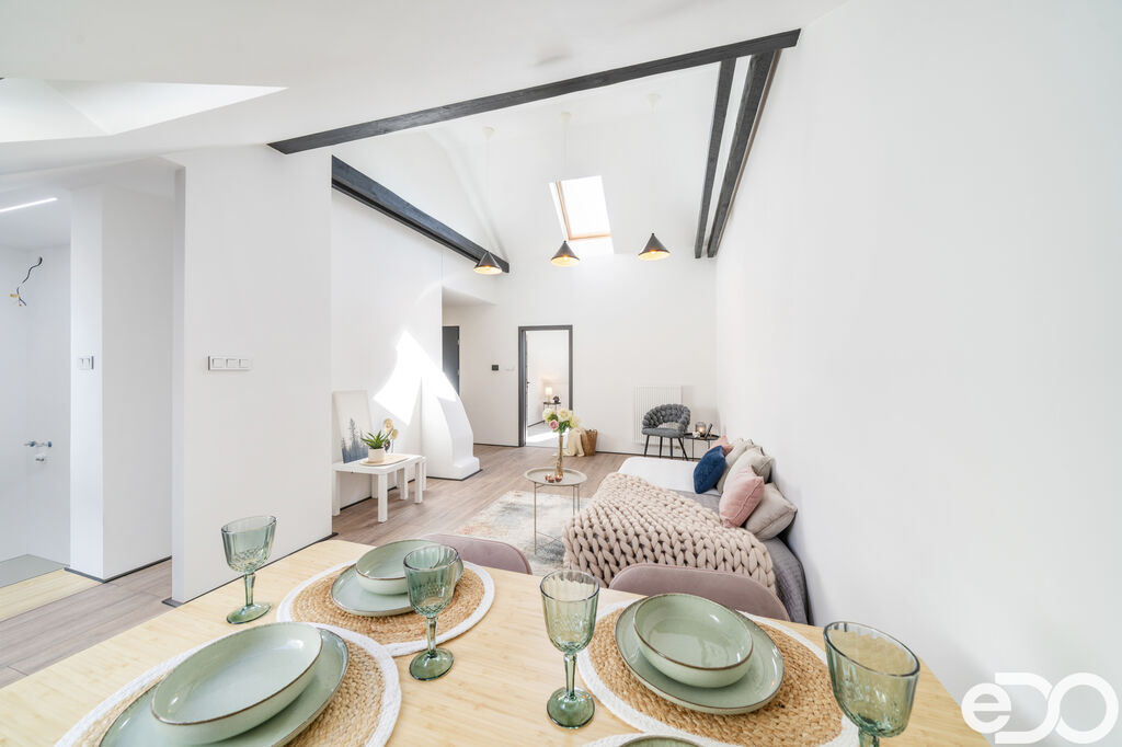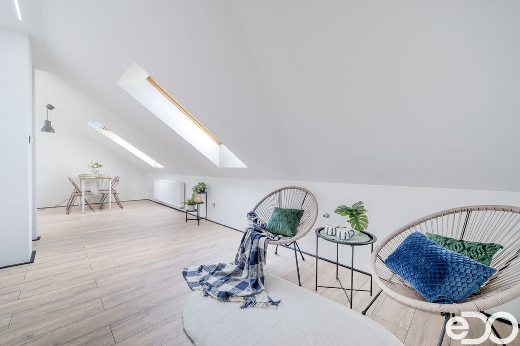 Na bytě je nová kachličková koupelna, nová elektřina. Jsou zde nová střešní okna značky Velux.