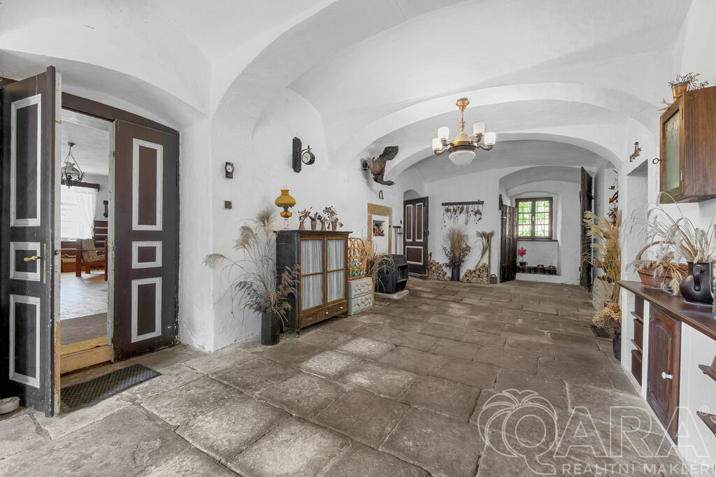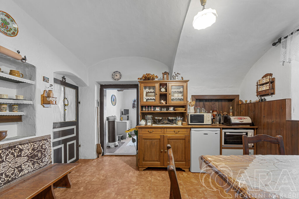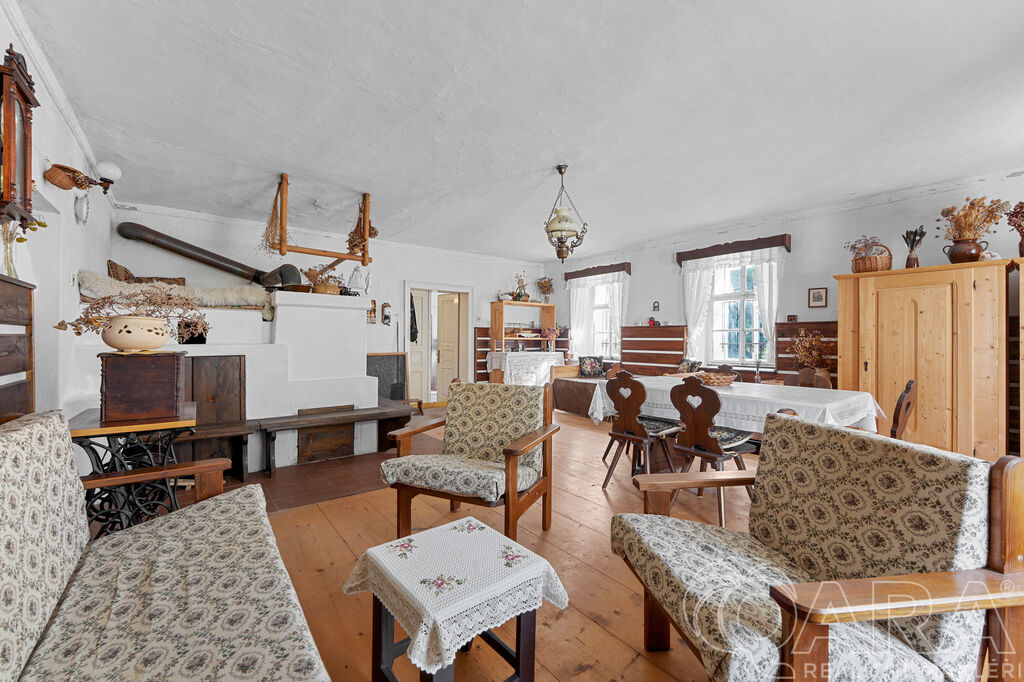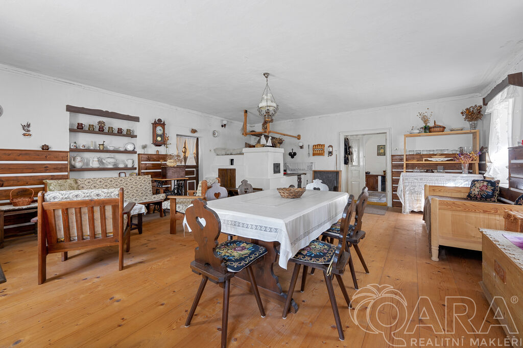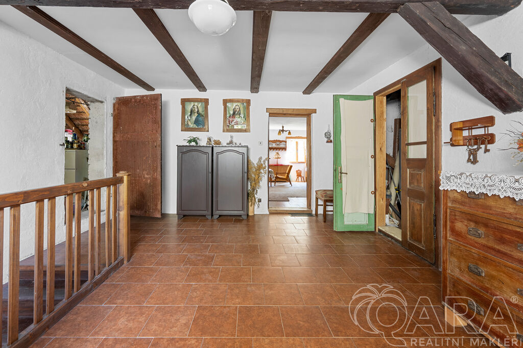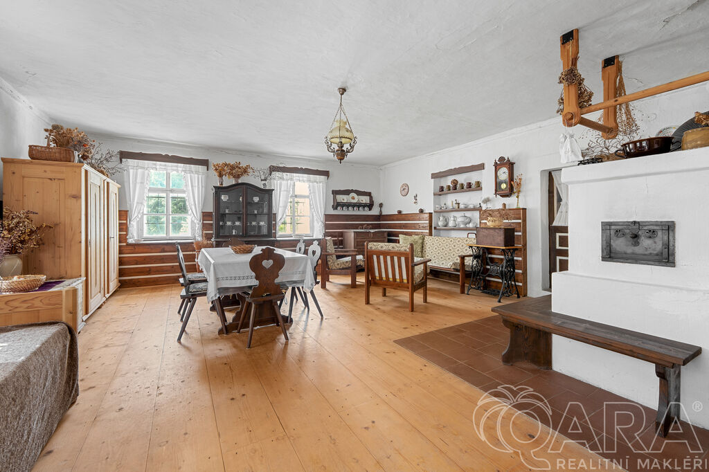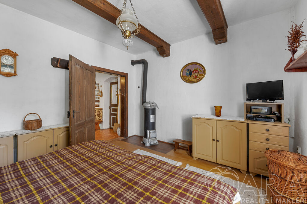 Dům je v dobrém stavu a nabízí tři prostorné pokoje, halu, kuchyň, komoru, koupelnu, toaletu, 2 sklady, dílnu a půdní prostory. K nemovitosti náleží také sklep o ploše 26,6 m², ideální pro uložení věcí k uskladnění. Objekt je vybaven řadou stylových prvků. Vyhřívání je pomocí kamen a jako zdroj teplé vody je zde elektrický bojler.