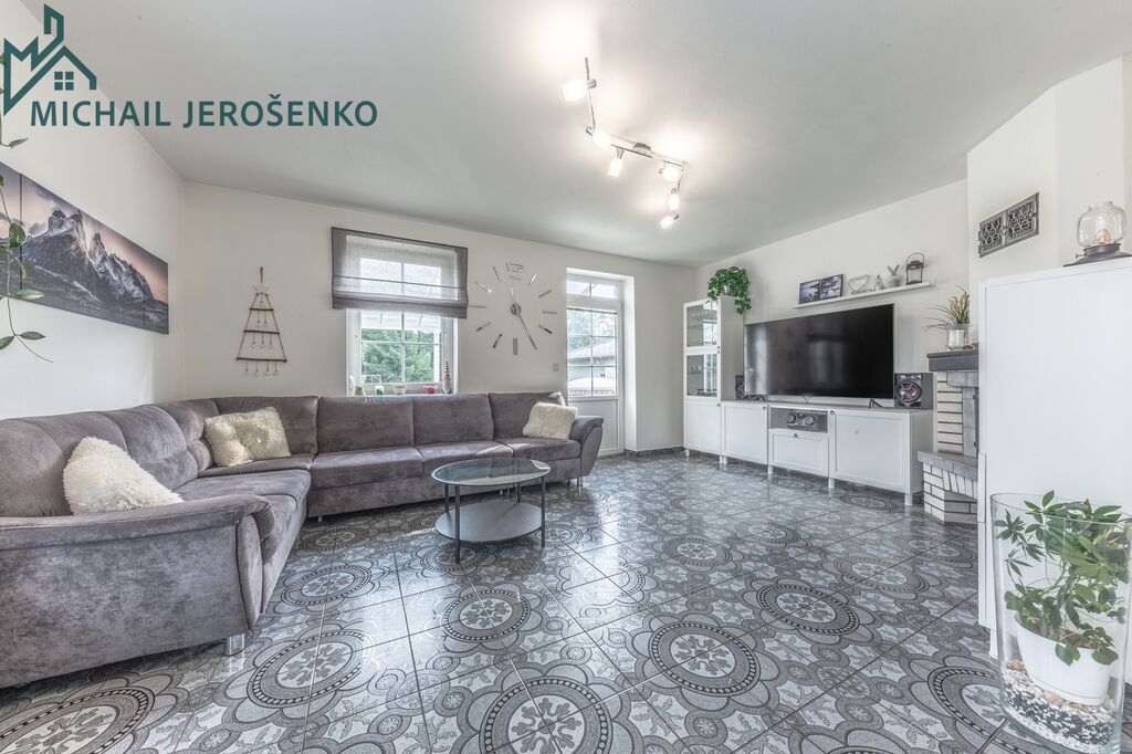 • přízemí: prostorný obývací pokoj s krbem a navazujícím kuchyňským koutem, v chodbě praktická spíž, samostatná toaleta.