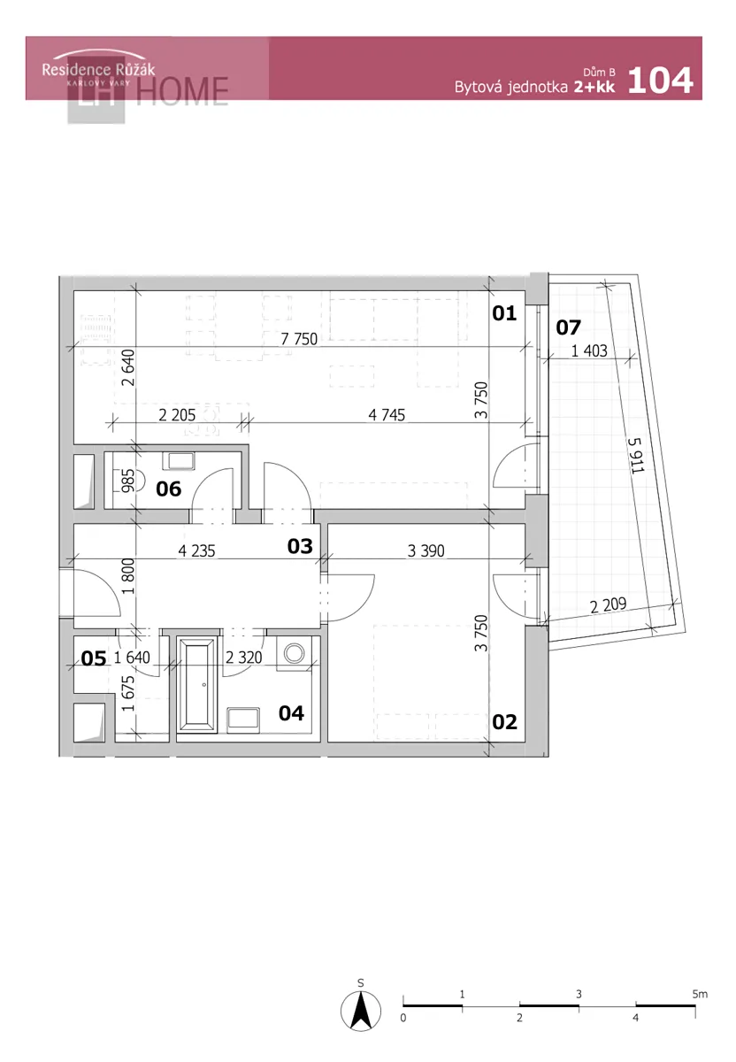 Nabízíme prodej bytu 2+kk - 60,06 m2 + balkón 10,84 m2 v 1. nadzemním patře budovy B.