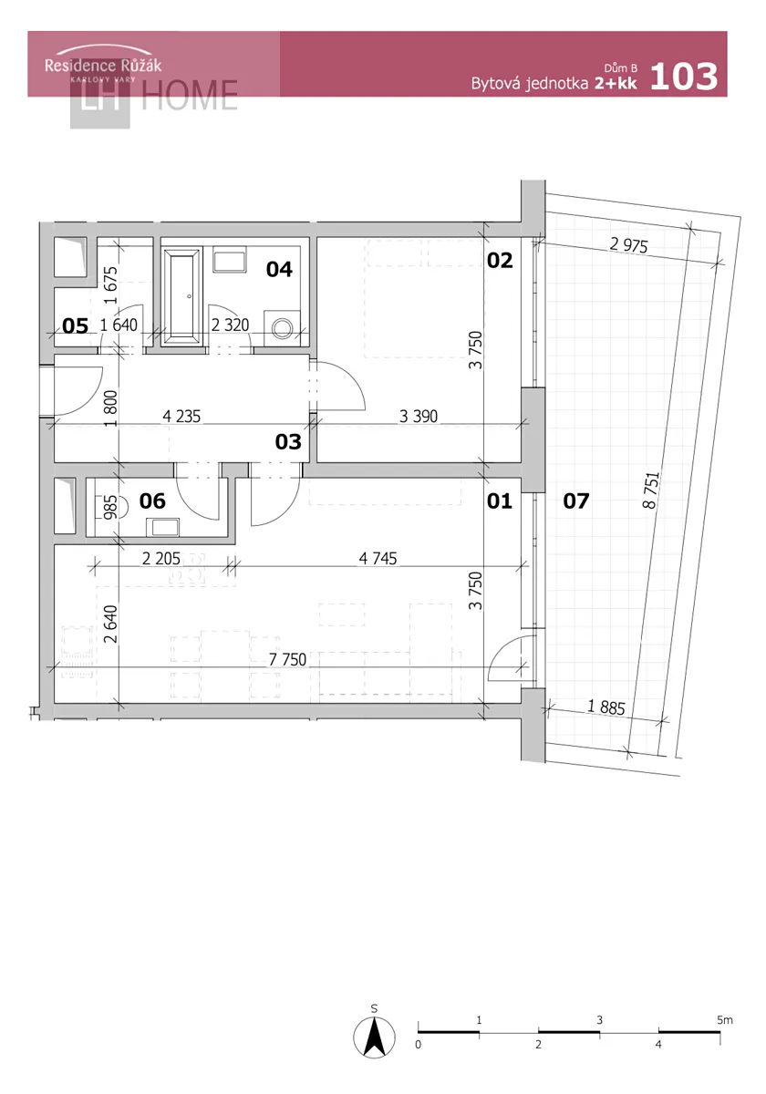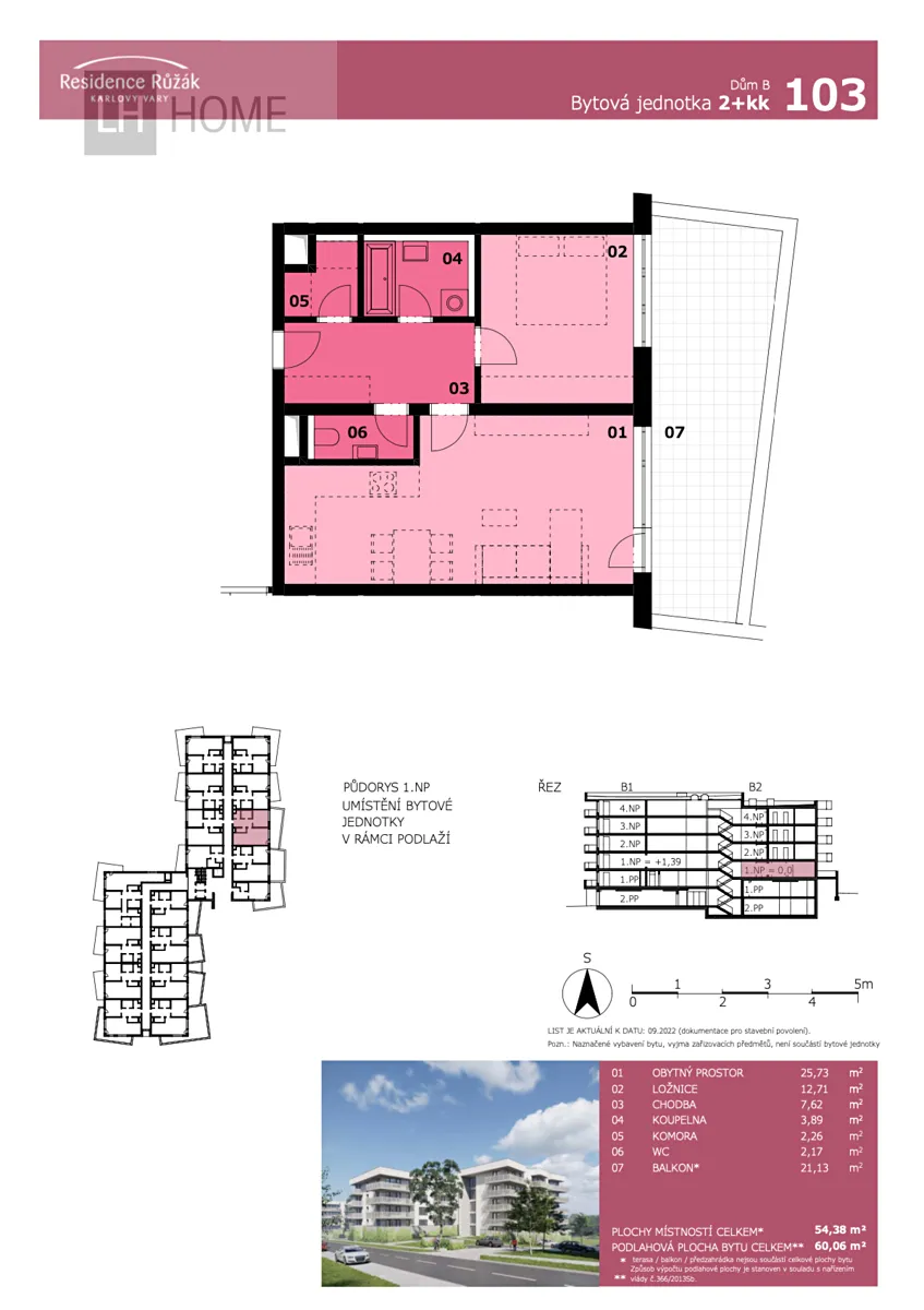 Nabízíme prodej bytu 2+kk - 60,06 m2 + balkón 21,13 m2 v 1. nadzemním patře budovy B.