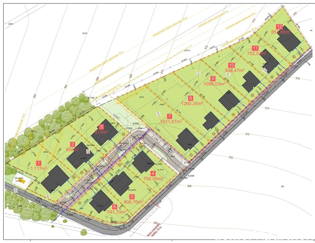 Do prodeje posílám 16 966 m², které ti dle územního plánu umožní postavit třeba malou čtvrť pro několik rodin. Ale také spousty jiného. Teď ale ještě víc do hloubky... Pozemky jsou řešeny jako několik kaskád vzniklých násypy. Díky tomu dostaneš nádherné výhledy do okolní krajiny a celkový pohled na novou výstavbu. Kolem pozemků vede asfaltová komunikace, takže přístup je zajištěn stejně jako připojení na elektro, které je hned na hranici. Složitější to pak může být s vodou a kanalizaci. Ale domovní ČOV a studny to vyřeší. Samozřejmě se dá jednat s obcí a provozovatelem vodovodů a kanalizací, protože pro takovou výstavbu se dá už vymyslet cokoliv.