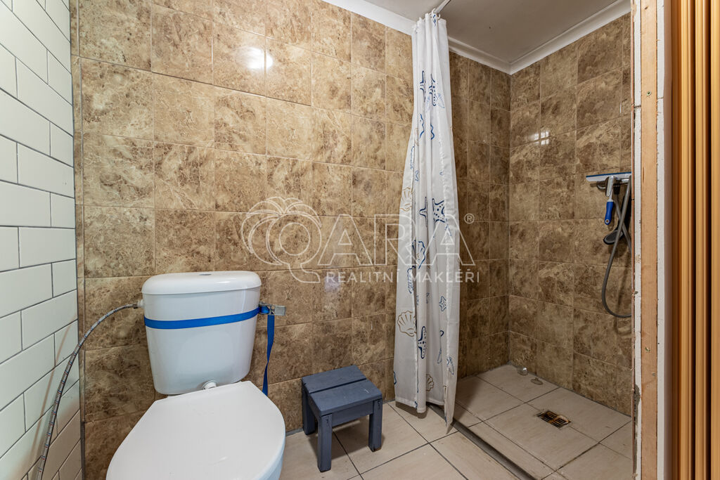✔️ přízemí: veranda (9,85 m²), obývací pokoj s kuchyní a krbovými kamny (21,16 m²), koupelna s WC (3,47 m²), ložnice (13,53 m²)