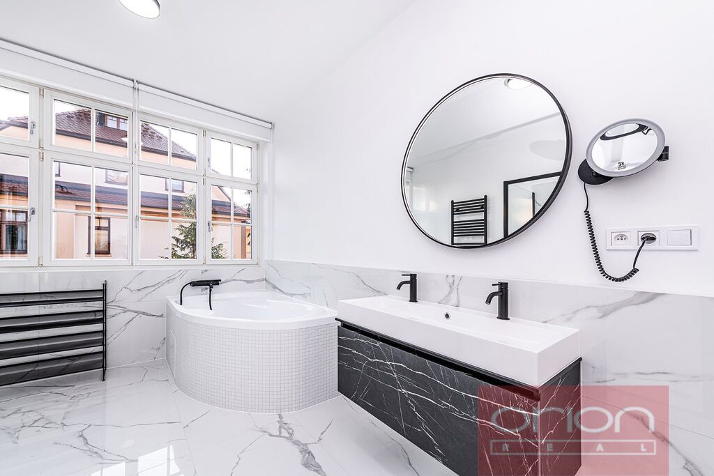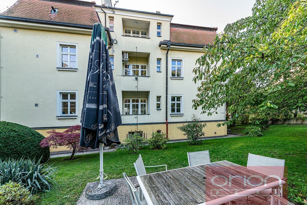 Nabízíme k pronájmu nově zrekonstruovaný byt v 1. patře domu s udržovanou zahradou ve vilové čtvrti Hanspaulka ve vyhledávané lokalitě Prahy 6. Celková plocha nezařízeného bytu 137 m² nabízí vstupní halu, prostorný obývací pokoj se vstupem na balkon, kuchyň vybavenou všemi spotřebiči a spojenou s jídelním prostorem, 2 ložnice, 1 koupelnu s rohovou vanou, samostatnou sprchou a toaletou, samostatné WC. K vybavení bytu patří klimatizace, plynové topení, zabezpečovací zařízení Jablotron s možností napojení na pult centrální ochrany (PCO) a skladovací prostor v přízemí domu. V ceně nájmu je zahrnuto stání na pozemku pod uzávěrou pro 1 auto a užívání zahrady.