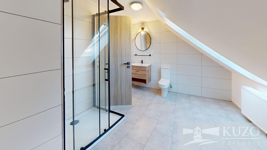 Hledáte nadstandardní bydlení s unikátní atmosférou? Nabízíme k pronájmu jedinečný, nově postavený byt 3+1 o celkové ploše 118,8 m² v atraktivní lokalitě v Příbrami, na ulici Fibichova. Byt, se samostatným vchodem, tvoří celé 1. patro rodinného domu a pyšní se moderním podkrovním vzhledem s přiznanými trámy.