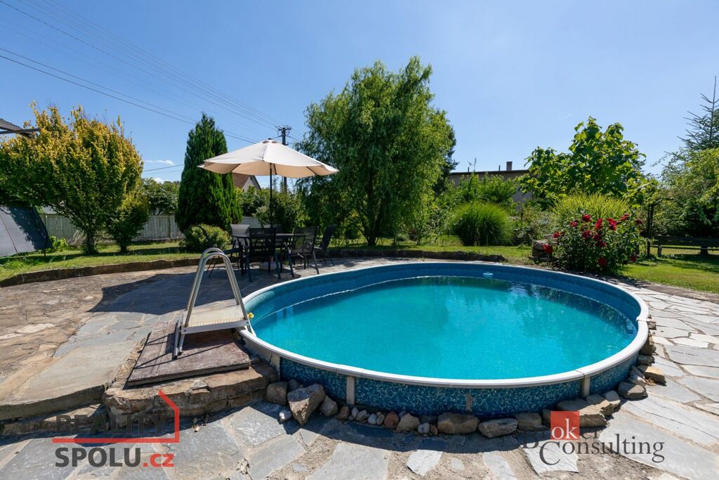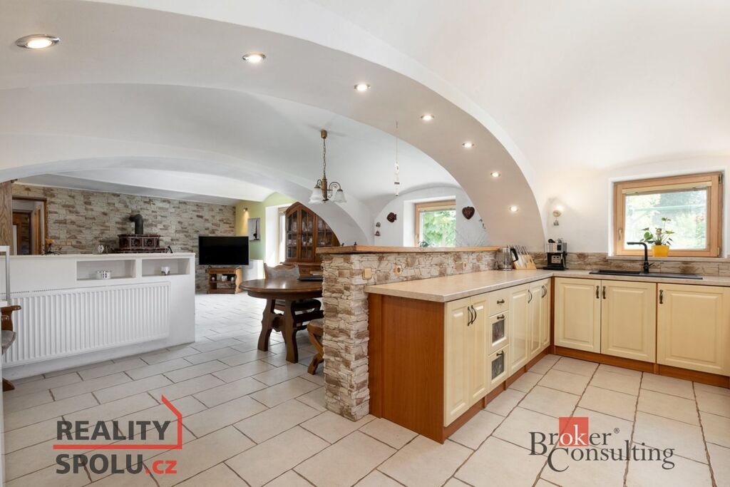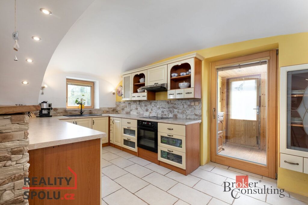 Pokud nebudete zrovna odpočívat na zahradě u kolektory vyhřívaného bazénu či hrát na schovku s dětmi mezi stromy, nabízí se ještě zahradní domek (rovněž s krbem) pro posezení s přáteli či rodinou, ale také třeba pro vaši dílnu například. Za předpokladu, že nevyužijete již tak poměrně velkou dílnu za garáží, která je součástí stavení. Do garáže se vejdou minimálně 2 velká auta a před garáž aut postavíte klidně dalších 6. A pokud by prostoru jako takového bylo stále málo, půdní prostory nabízí další možnosti. Samotné místnosti v domě jsou nadstandardně veliké.