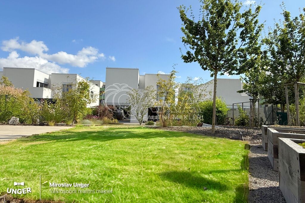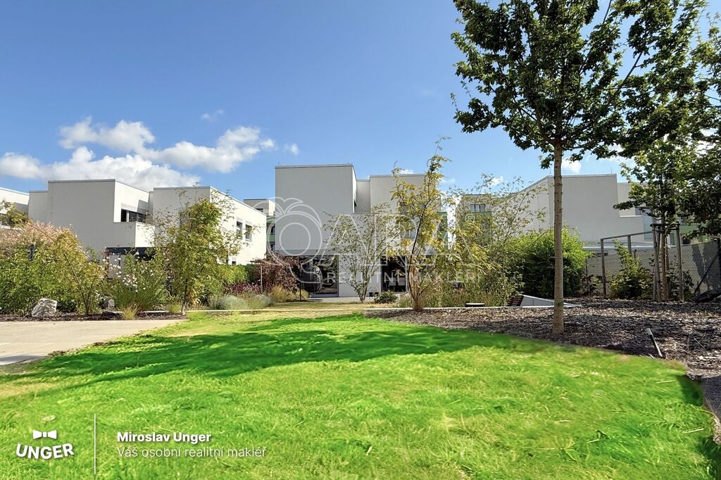Kompletní občanská vybavenost je doslova na dosah ruky – supermarket BILLA, lékárna i kavárna jsou jen tři minuty pohodové chůze od domu.