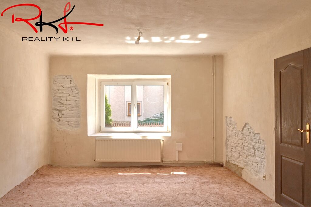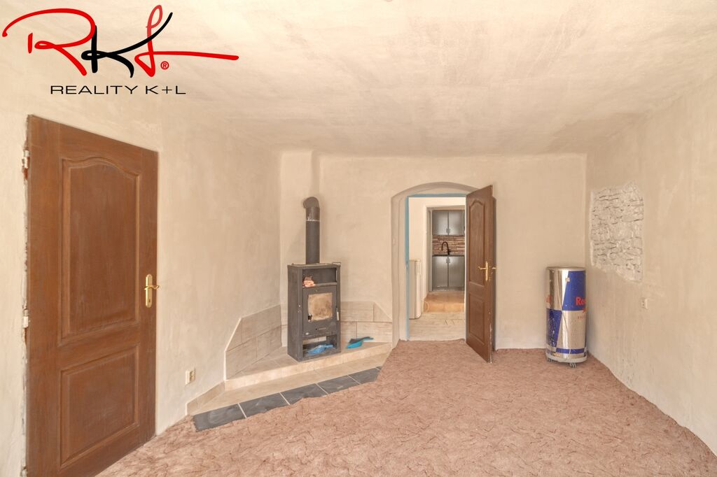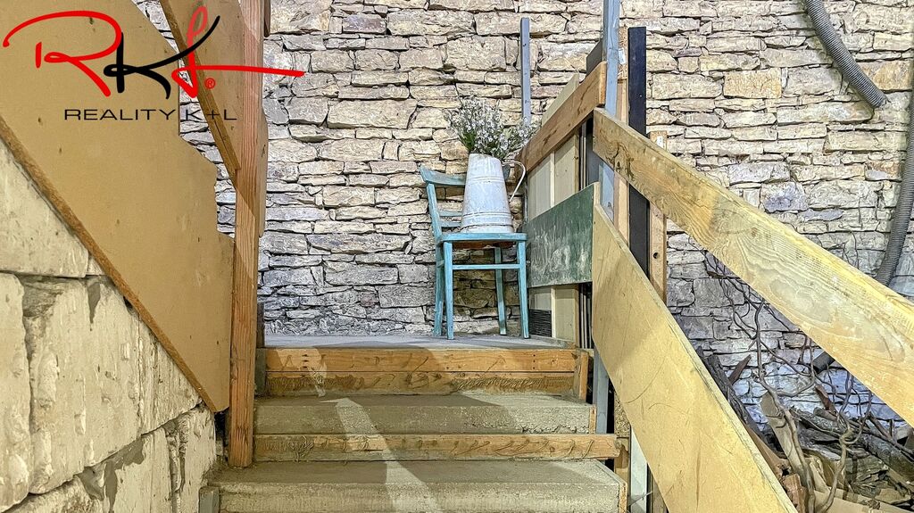 Přístup samostatným vchodem po betonovém schodišti přes otevřený prostor původní stodoly (vhodný jako budoucí obytný prostor). Dispozice: chodba, koupelna, toaleta, kuchyně s linkou spojená s obývacím pokojem, dva samostatné pokoje.