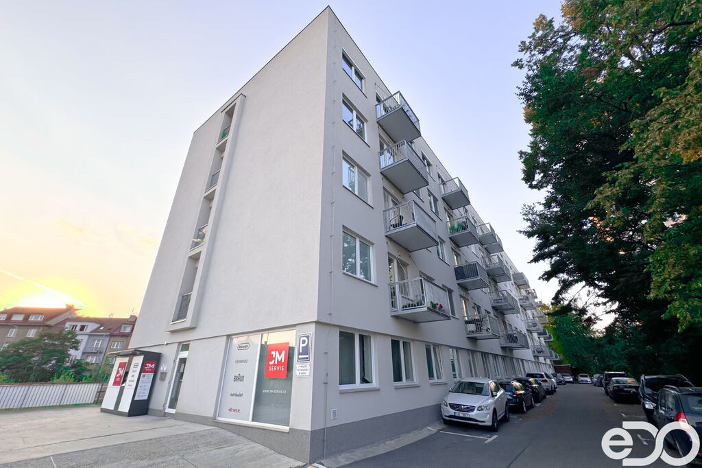 Byt se skládá z dlouhé chodby, obývacího pokoje s kuchyňským koutem, dalších dvou pokojů, koupelny s vanou i sprchovým koutem, samostatným WC s umyvadlem a rozměrné komory, která může sloužit jako úložný prostor. Jednotka se nabízí nezařízená nábytkem. V nové kuchyni, která je vestavěná na míru se nachází veškeré moderní spotřebiče značky AEG: indukční varná deska s digestoří, elektrická trouba, mikrovlnná trouba, vestavěná myčka a lednice s mrazákem. V komoře je umístěna kombinovaná pračka se sušičkou značky Samsung. Díky plastovým oknům a výborné mezibytové zvukové izolaci je byt velmi tichý, což Vám zajistí poklidné a spokojené bydlení. Podlahy jsou laminátové plovoucí a keramická dlažba, vytápění a ohřev vody pak ústřední (výměníková stanice v budově). Zrekonstruovaný bytový dům se nachází v městské části Strašnice, které jsou klidnou a elegantní čtvrtí nedaleko pražského centra. Okolní prvorepubliková vilová zástavba má svoji atmosféru. V bezprostředním okolí se nachází veškerá občanská vybavenost včetně obchodů, restaurací, škol, školek, polikliniky, divadla a mnoho dalších volnočasových aktivit. K relaxaci a sportovnímu vyžití lze využít bohatou okolní zeleň – Malešický park, přírodní park Smetanka, park Gutovka, Botanickou zahradu Malešice a v neposlední řadě i Hostivařskou přehradu. Výborná dopravní dostupnost do centra města jak autem, tak MHD. Několik kroků od domu se nachází autobusová a tramvajová zastávka, odkud se mimo jiné dostanete i na blízké stanice metra A - Strašnická či Depo Hostivař.