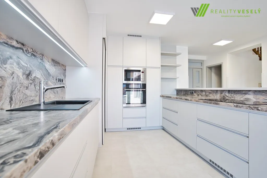 Dispozice 4+kk nabízí vzdušný a světlý prostor pro celou rodinu. Součástí domu je i garáž, která zajistí pohodlné parkování.