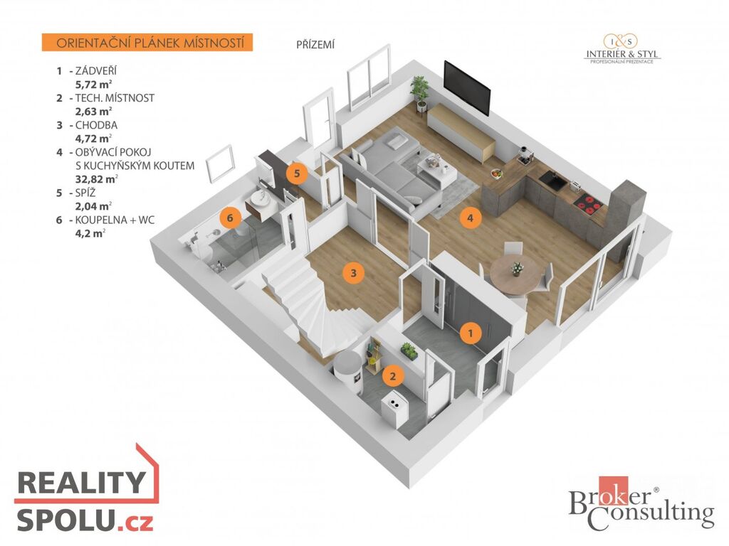 V domě je myšleno na praktické úložné prostory (spíž, prostor pod schody, půda, atd..), takže nabízí pohodlí i pro rodinné bydlení.