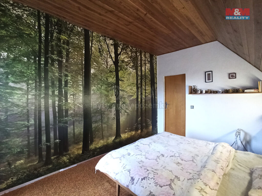 Nabízíme k prodeji krásnou útulnou chatu s číslem evidenčním a potenciálem k celoročnímu bydlení. Chata z roku 1985 se nachází ve velmi klidné rekreační části obce Dalov, v těsné blízkosti lesa a potoka. Je ideálním místem pro milovníky přírody i aktivního odpočinku. Zastavěná plocha je 53 m2 s výměrou zahrady 394 m2. Na zahradě je k dispozici venkovní krb s posezením a udírnou, který vybízí k příjemnému trávení času s rodinou a přáteli. V přízemí chaty se nachází obývací pokoj s krbem a vstupem na prostornou terasu o velikosti 12 m², dále kuchyně, koupelna, WC a vstup do sklepa z chodby. V patře se nachází relaxační místnost a ložnice – obě se vstupem na terasu o velikosti 8m2, koupelna, WC a přístup na půdu. Garáž o vel. 10 m2 je součástí chaty, taktéž kotelna a dílna. Chata je vybavena elektřinou, kotlem na tuhá paliva, radiátorovým vytápěním a bojlerem na ohřev vody. Celá chata je podsklepená, obložená dřevem se zateplenými stropy a izolovanou střechou.