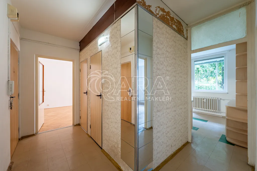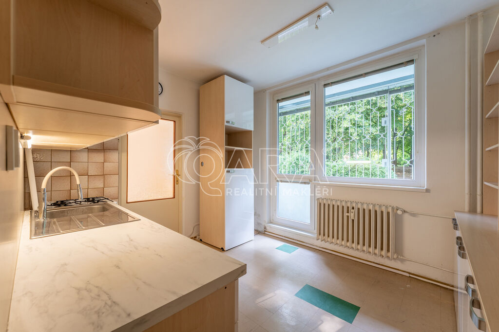 Jedná se o bytovou jednotku v původním, ale udržovaném stavu o výměře 70,6 m², která se nachází v 1. NP panelového domu. Byt se skládá z prostorné chodby, ze které se dostaneme do všech místností. Kuchyně je zařízena kuchyňskou linkou, elektrickou troubou s plynovým sporákem a digestoří. Z kuchyně je přístupná první lodžie. Z chodby jsou přístupné tři samostatné a vzájemně neprůchozí pokoje, jeden o výměře 20,7 m², druhý o výměře 14,2 m² a třetí o výměře 12 m². Z největšího pokoje je přístupná druhá lodžie. Koupelna je vybavena vanou, umyvadlem a přípojkou na pračku. WC je samostatně. K dispozici je i šatna o výměře 3,8 m². Je zde také možnost využívat společnou kolárnu/kočárkárnu pro celý dům. V přízemí je také samostatná sklepní kóje.