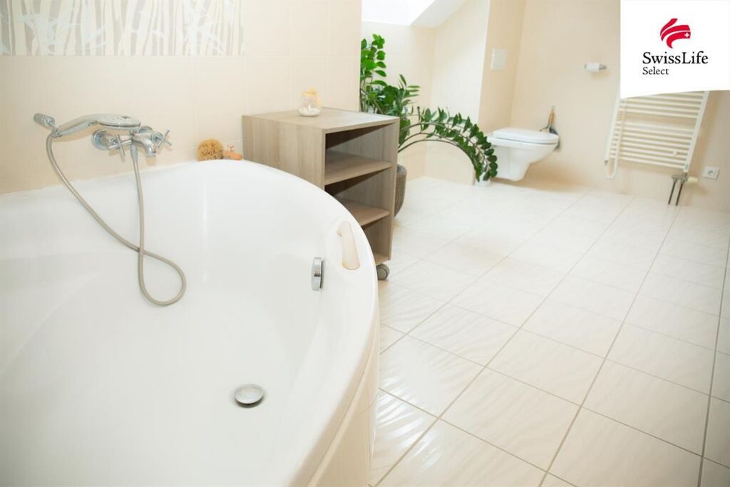 Patro: 3 ložnice s nádherným výhledem na Orlické hory, prostorná koupelna s rohovou vanou a dvěma umyvadly, přístup na půdu  možnost dalšího pokoje nebo úložného prostoru. Další úložný prostor je nad garáží.
