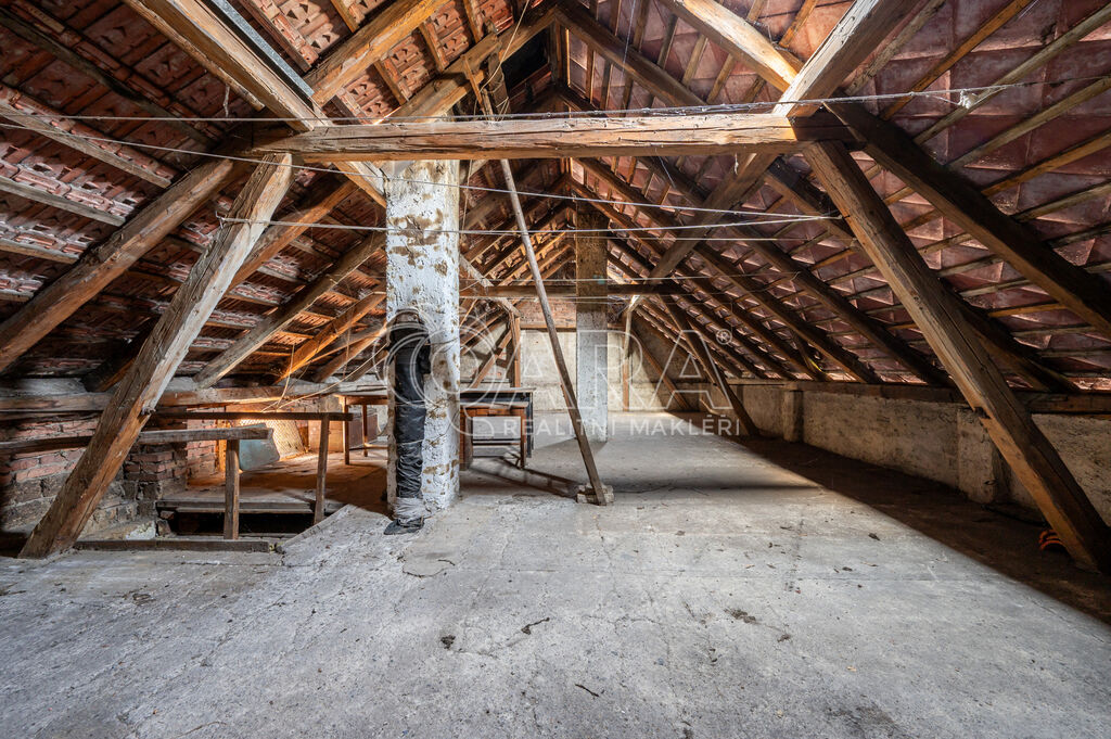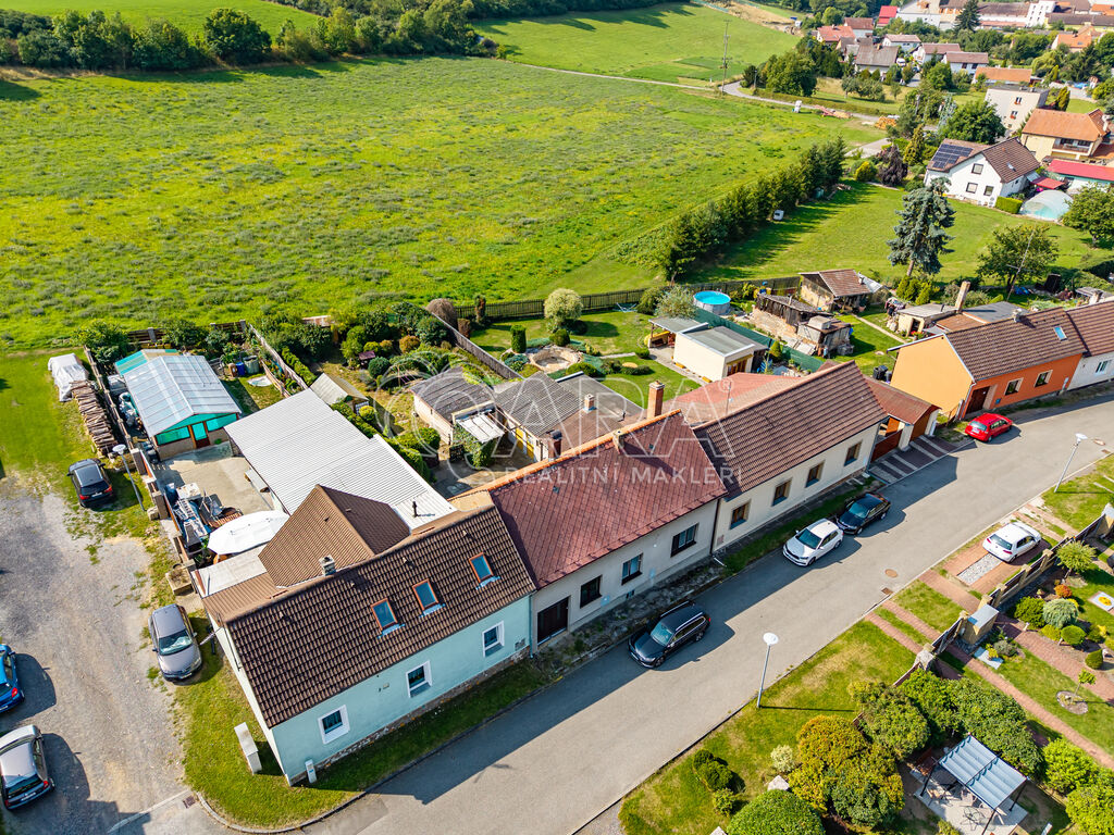 Navíc zde najdete prostorný sklep (13 m²), menší sklady a garáž na pozemku. Na dvorku se nachází kopaná studna, skvělá pro zalévání zahrady. Rozlehlá půda může být využita jako sklad, případně je možné zvážit potenciál k obytné vestavbě.