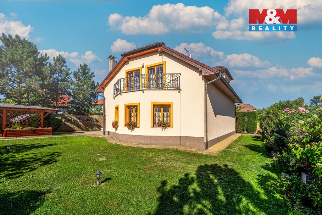 Nadstandardní rodinný dům 5+kk v klidné a vyhledávané části Prahy 9 – Hostavice, jen pár kroků od přírodní rezervace V pískovně. V přízemí vás uvítá velkorysý obývací prostor s krbem, kuchyní Sykora a přímým vstupem na terasu, reprezentativní vstupní chodba a koupelna se sprchou a finskou saunou. V patře najdete čtyři prostorné ložnice s přístupem na balkony, technickou místnost a koupelnu s vanou. Dům je vytápěn plynovým kotlem s podlahovým topením v přízemí a v obou podlažích je instalován centrální vysavač. Součástí je i prostorná vytápěná garáž pro dva vozy a další parkovací místa na pozemku. Krásná, udržovaná zahrada s terasou a zastřešeným posezením nabízí absolutní soukromí a ideální místo k odpočinku. Hostavice jsou skvělou lokalitou pro rodinné bydlení – najdete zde kompletní občanskou vybavenost, parky, cyklostezky i perfektní dopravní dostupnost do centra Prahy. Nezmeškejte tuto jedinečnou příležitost – domluvte si prohlídku a objevte dům, který spojuje komfort a soukromí!