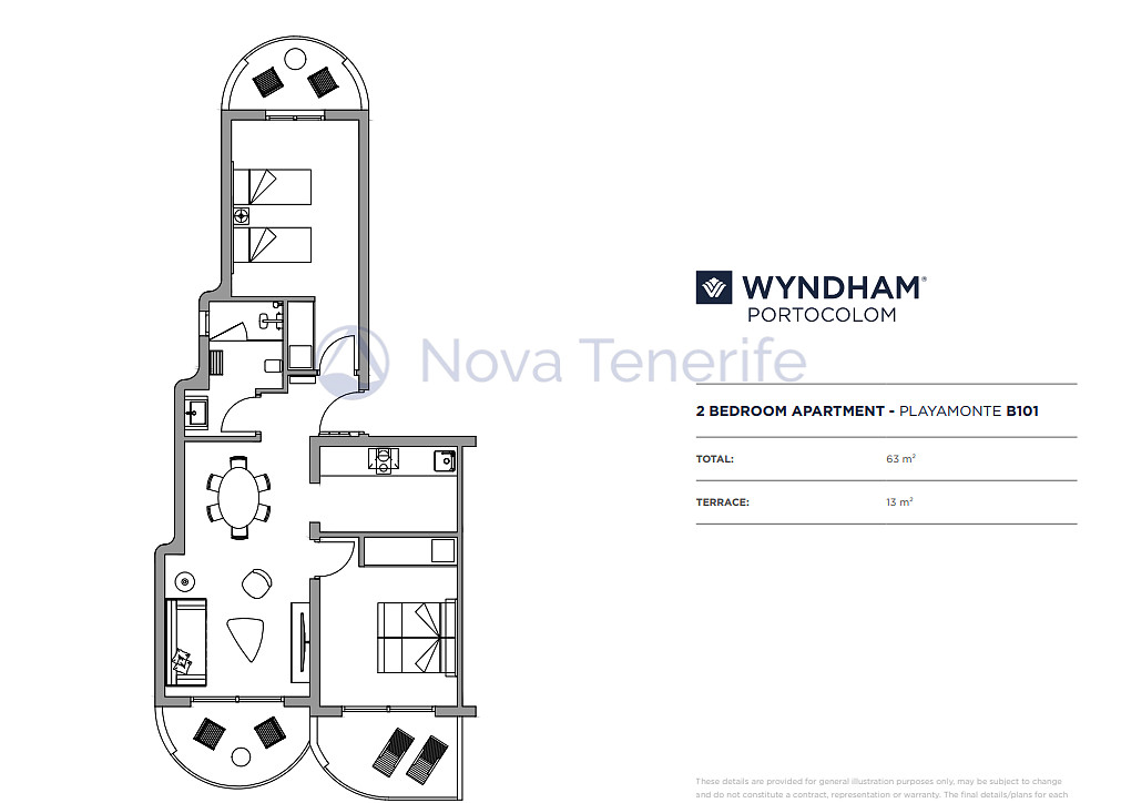 Nabízíme ke koupi prostorný apartmán se 2 ložnicemi o velikosti 63 m² + terasa 13,3 m², pouhých 250 metrů od pláže Cala Marçal. Díky dispozici až pro 6 osob je ideální pro rodiny nebo skupinu turistů, kteří hledají pohodlí domova za doprovodu výjimečných resortových služeb.
