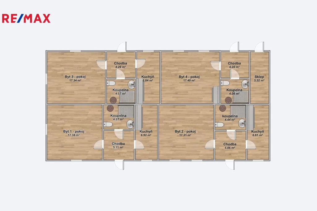 Nemovitost tvoří čtyři samostatné byty o dispozici 1+1, každý se samostatným vstupem přímo z ulice a samostatnými měřidly energií (elektřina, voda). Celková užitná plocha činí 131 m². Dům je zateplený, osazen plastovými okny, vytápění je řešeno přímotopy. Plyn je na hranici pozemku.