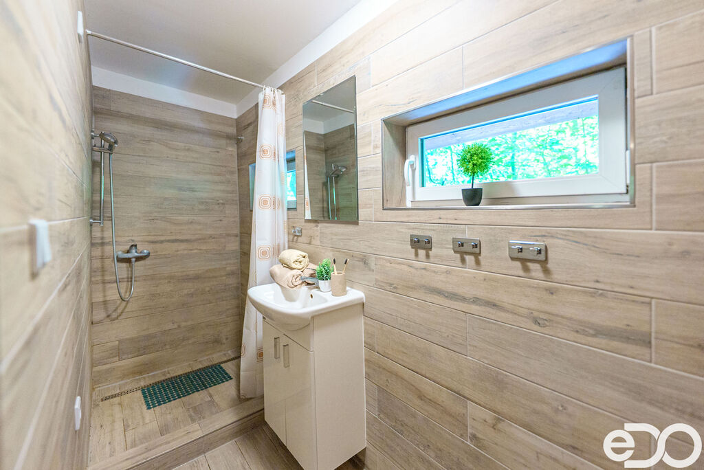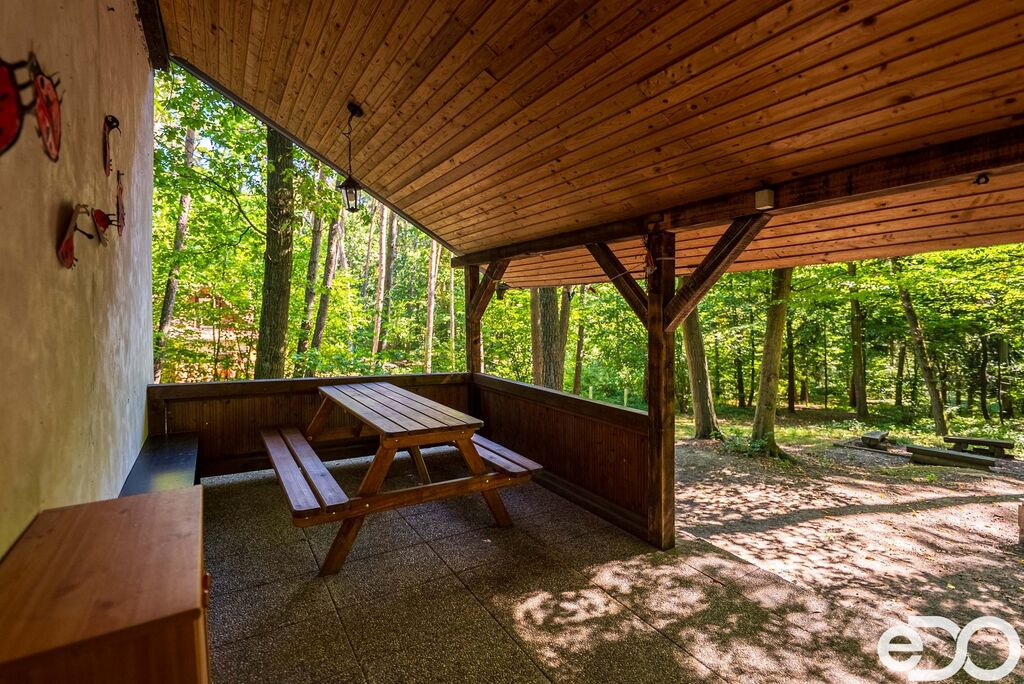 Chata je v dobrém stavu, s koupelnou po rekonstrukci, obývací částí s krbovými kamny a dvěma ložnicemi, které poskytují ubytování pro až 6 osob. Venkovní pergola s posezením a ohništěm dotváří příjemné zázemí pro odpočinek.