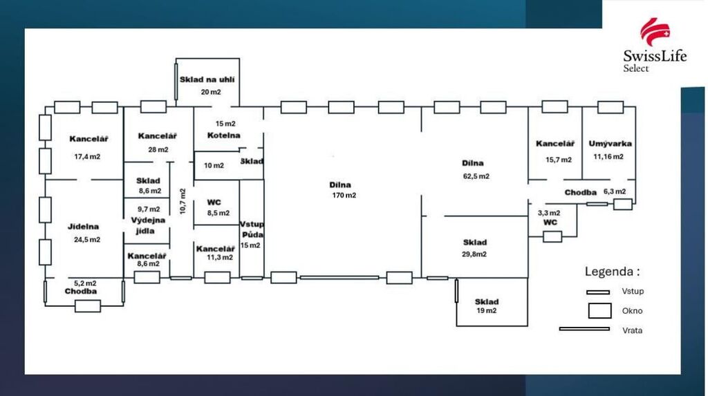 Objekt je variabilní a nabízí široké možnosti využití od výroby přes servisní činnost až po skladové prostory s kompletním zázemím.