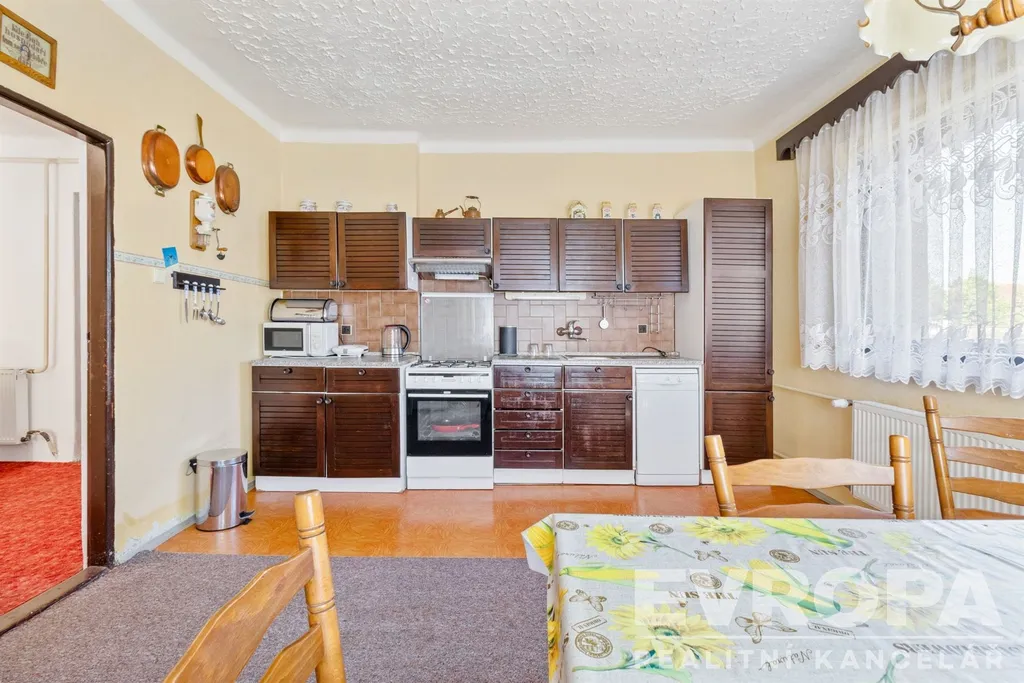 Nabízíme k prodeji velmi zajímavou nemovitost ať už z pohledu jejího situování v srdci Běchovic, tak možnosti získat lukrativní stavební pozemek na exponovaném místě. Jedná se o starší rodinný dům 6+1 s dostatečně velkou zahradou. Celková plocha pozemku je 584 m2, z toho 133 m2 zastavěno stavbou domu. Zahrada je rovinná, s vjezdem a vchodem z ulice Českobrodská. Rodinný dům je z inž. sítí v současné době napojen na vodovod, plyn a elektřinu. Odpadní vody byly svedeny do vlastní jímky. Je zde ale samozřejmě i možnost napojení na veřejnou kanalizaci. Podlahová plocha domu je 156 m2 + 2x prostory půdy s oknem 8 a 10 m2 + menší sklepní prostor 4 m2 + venkovní sklad 8 m2. Dům je převážně v původním stavu určený k celkové rekonstrukci. Především fasáda je ve zhoršeném stavu. Rekonstrukcí prošla v minulosti střešní krytina, měněn byl plynový kotel s radiátory. Místo je velmi vhodné i pro komerční využití domu pro sídlo firmy, nové cukrárny nebo kavárny, drobného provozu apod. Vybízí se varianta kompletního přebudování domu od základů a získat tak pro svůj projekt místo v historické zástavbě této malebné Pražské čtvrti a příležitost přestavby na více jednotek. V přímém okolí domu je široká občanská vybavenost, jako například Základní škola (která je prakticky za rohem), mateřská škola, pošta, obchody, sportoviště a další. Vedle domu je autobusová zastávka MHD se 7 různými spoji, včetně nočního autobusu. V pěší dostupné vzdálenosti je pak i vlaková stanice (18 min do centra Prahy na Hlavní nádraží). Po dokončení již rozestavěného silničního okruhu v místě kolem Prahy ubyde značná část provozu aut před domem.