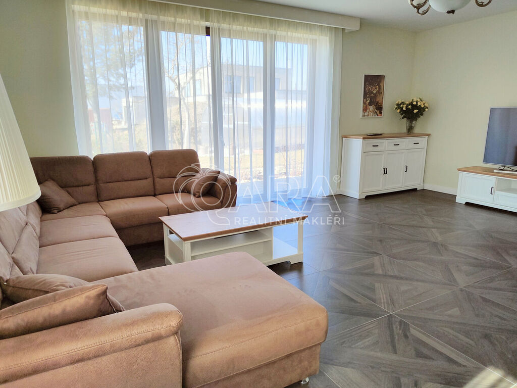 Dominantou přízemí je velký obývací pokoj s krbem a velkými okny, který je vkusně rozdělen na obývací, kuchyňskou a jídelní část. Krb dodává prostoru velmi útulný nádech. Pět neprůchozích pokojů zaručují dostatek soukromí pro početnou rodinu. V přízemí se také nachází spíž, hlavní ložnice, samostatné WC, zádveří s přímým vstupem do garáže a technické místností. Za zmínku stojí hlavní ložnice s vlastní koupelnou a šatnou, s výstupem na zastřešenou terasu orientovanou na západ. Druha terasa se nachází v prvním patře hned nad hlavní ložnici a je přístupná ze společné chodby. První patro tvoří 3 ložnice, z toho jedna je využívaná jako pracovna. Dále jsou zde velká koupelna a prostorná komora.