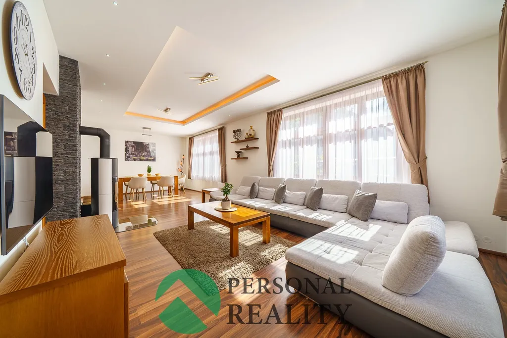 Tento dům s velkolepou obytnou plochou, ideální pro rodinné bydlení, prošel kompletní a nákladnou rekonstrukcí. Dispozice zahrnuje velkoryse řešený obývací pokoj s krbovými kamny, který je propojený s jídelním koutem. Dále zde najdete moderní kuchyň s ostrůvkem a pultíkem, tři ložnice, dvě pracovny a dvě elegantní koupelny.