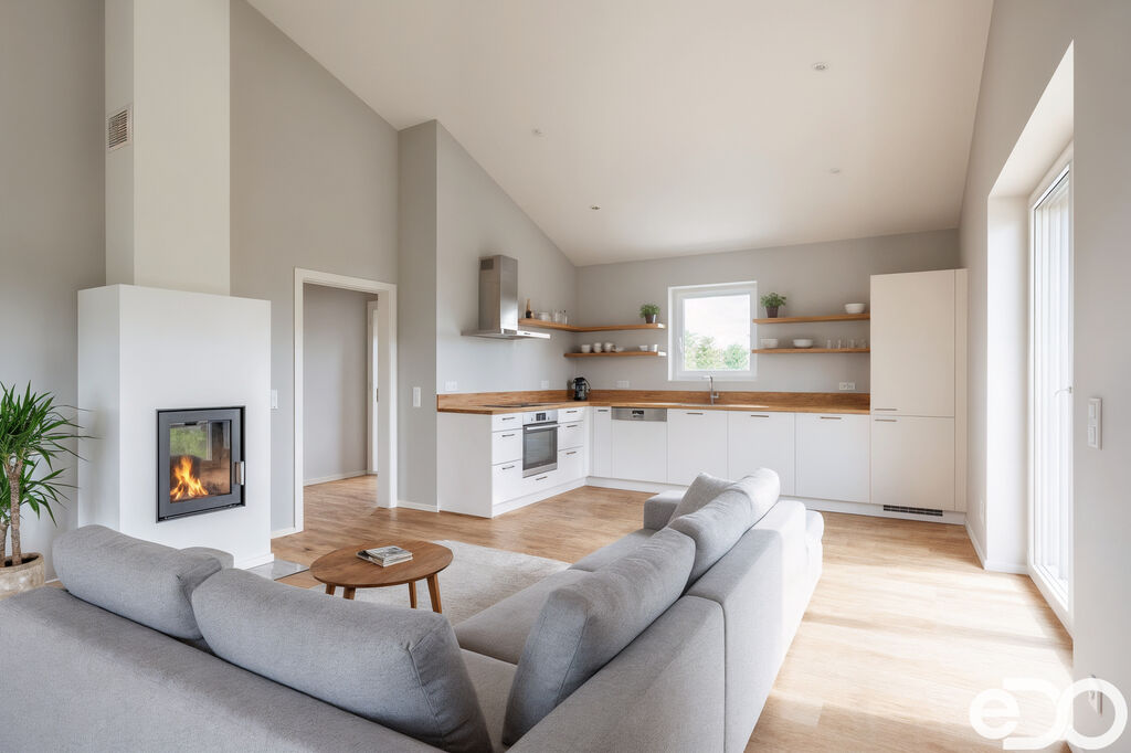 • prostorný obývací pokoj s kuchyňským a jídelním koutem, vstupem na terasu a jižní orientací