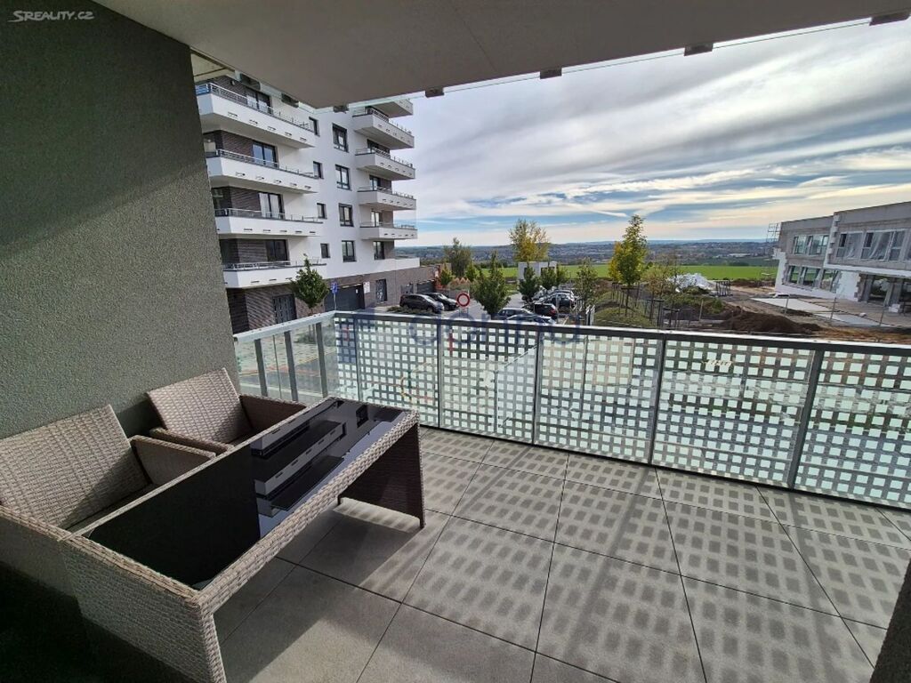 Pronájem nového, z větší části zařízeného bytu 3+kk (viz foto), plocha 87m2 + terasa 14m2, v 1. podlaží cihlové novostavby, ul. Thomasova, Praha 5 - Třebonice.