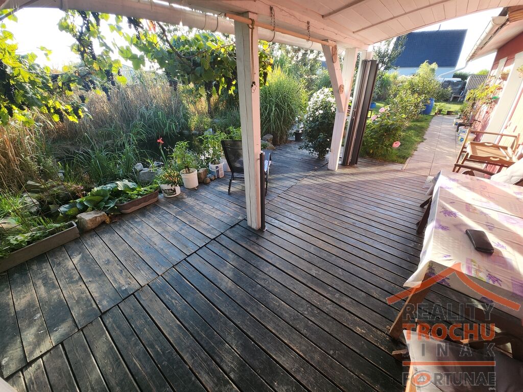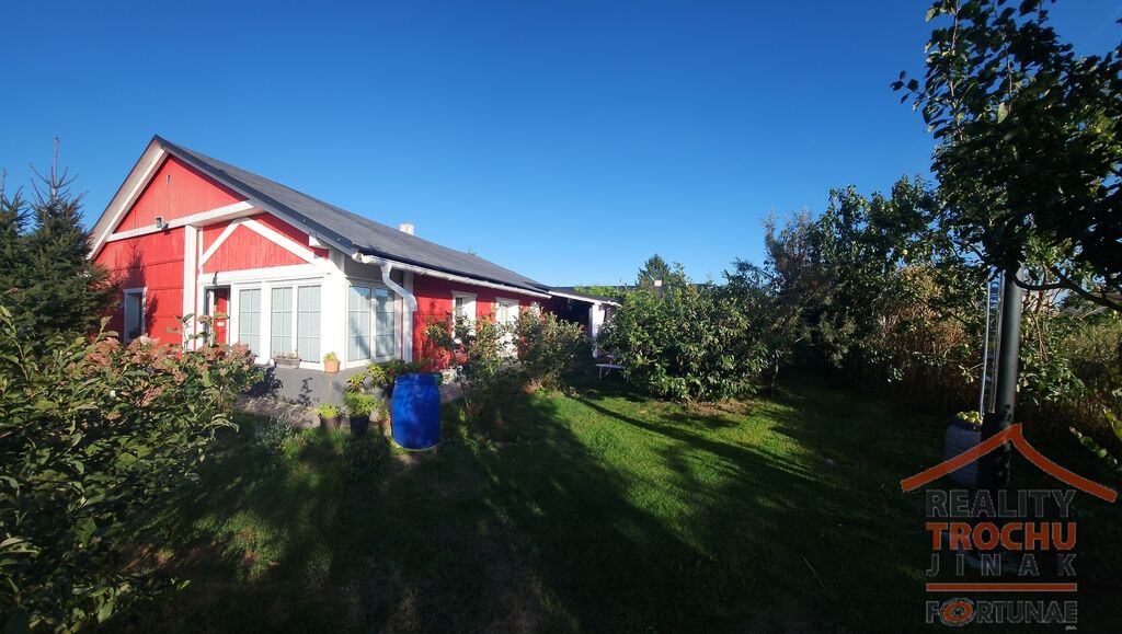 Dovolujeme si Vám nabídnout k prodeji přízemní zateplenou dřevostavbu rodinného domu typu bungalov v obci Smržov, která se nachází 10 km od Hradce Králové, 8 minut od sjezdu dálnice D11, 7 minut od Smiřic. Tento dům s velmi dobrou konstrukcí je ideální volbou pro ty, kteří hledají útulné a pohodlné bydlení . Vnitřní příčky jsou vyzděné. Nachází se na pozemku o rozloze 853 m2, který nabízí dostatek prostoru pro odpočinek a různé volnočasové aktivity. Chodbou, ze které je vstup i do technické místnosti s koupelnou, se dostanete do moderně řešeného obývacího pokoje s jídelnou a kuchyní. Dominantou obývacího pokoje je litinová krbová vložka 17 kW, která má dvojité spalování a s přehledem vytopí celý dům. Náklady na topení jsou pak cca 14 tis. ročně a celkové náklady na provoz domu jsou opravdu velmi nízké. Dále pak z chodby vstup do dalších dvou samostatných, neprůchozích pokojů (v jednom pokoji vsazená infrasauna, součástí druhého je šatna). Toaleta je zvlášť. Z obývacího pokoje se dostaneme na terasu cca 18 m2 s výhledem na vsazené samočistící, koupací jezírko 30 m2 plné ozdobných koi kaprů. Podlahy PVC a dlažba, okna plastová trojskla. Dům má vlastní studnu s pitnou vodou napojenou do domu, odpady řešeny ČOV. Příprava na elektrokotel a majitel má pro případ blackoutu i elektrocentrálu. Výborné autobusové spojení Smržov – Smiřice, Hradec Králové a Jaroměř. V obci je dětské hřiště, přírodní koupaliště, restaurace a připravuje se výstavba multifunkčního sportovního hřiště (tenis, fotbal, volejbal, floorbal, atd.). Dům je ideální volbou pro menší rodinu nebo pár, který požaduje komfortní bydlení. Díky užitné ploše 125 m2 si můžete užívat prostorného a prakticky řešeného interiéru. Výhodou dřevostavby je také přirozeně dobrá izolace a nízké náklady na vytápění. Pokud Vás dům zaujal, neváhejte nám napsat nebo zavolat a rádi Vám vše ukážeme osobně. Prohlídky jsou možné po předchozí domluvě. Pro více informací o této nemovitosti nebo sjednání prohlídky nás prosím kontaktujte nebo vyplňte níže uvedený formulář, rádi Vám pomůžeme.