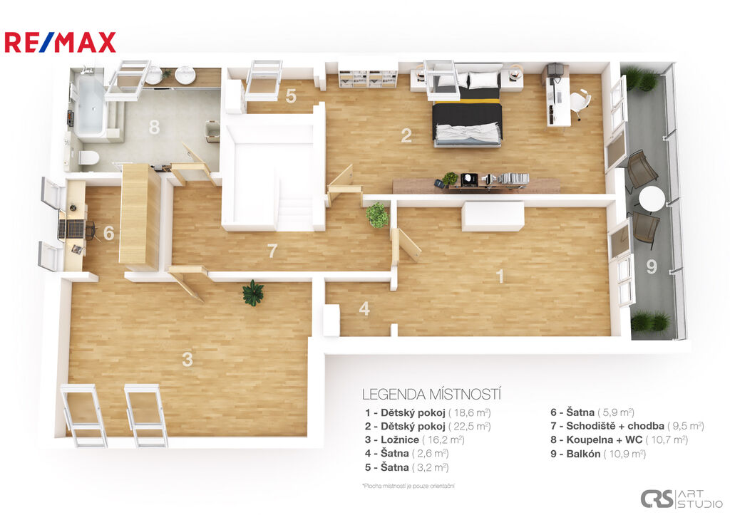 celková užitná plocha 355 m² ve třech podlažích