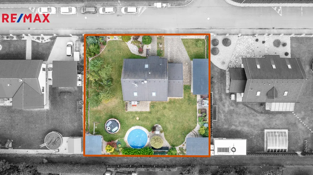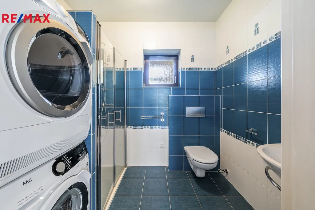 Ve výhradní zastoupení společnosti RE/MAX Future nabízíme k prodeji zděný rodinný dům o dispozici 5+kk se skladem, krytým parkovacím stáním a dalším příslušenstvím, který se nachází na pravidelném pozemku o celkové výměře 1057 m2. Typový rodinný dům od renomované architektonické kanceláře byl postaven v roce 2010 a jeho obvodové zdivo je tvořeno cihlou Porotherm a navíc zatepleno. Do detailů promyšlená dispozice stavby poskytuje v přízemí obývací prostor s kuchyňským a jídelním koutem a prostorný samostatný pokoj, obě dvě místnosti mají přístup francouzskými okny na zahradu s terasou orientovanou jižním směrem. V podkroví se nacházejí další tři plnohodnotné pokoje. V obou podlažích kromě komunikačních prostor jsou umístěny koupelny s toaletou, v přízemí se sprchovým koutem, v podkroví s rohovou vanou. Dispozici domu doplňuje sklad se samostatným vchodem ze zahrady a kryté parkovací stání přímo proti vjezdovým posuvným vratům na dálkové ovládání. Úložný prostor (spíž) také pod schody do podkroví, v koupelně v podkroví a pod hřebenem v půdním prostoru. Vytápění rodinného domu zajišťuje plynový kotel s podlahovým vytápěním a alternativně krbová vložka s teplovzdušným rozvodem do místností a tak společně s kvalitní konstrukcí pláště budovy bylo dosaženo vynikající energetické náročnosti třídy B. Moderní kuchyňská linka je vybavena vestavěnými spotřebiči, na podlahách ve všech místnostech vinyl, do podkroví vedou schody z masivu. Podkrovní místnosti prosvětleny okny do štítových zdí a částečně střešními okny, terasu zastiňuje stahovací markýza. V domě instalováno zabezpečovací zařízení.