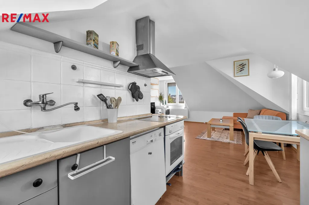 Bytová jednotka se nachází v posledním podlaží domu a díky své poloze nabízí příjemné světelné podmínky i klidné prostředí. Dvě velká okna v obývacím pokoji, která směřují na západ, přináší romantický výhled na západ slunce. Vytápění i ohřev vody je řešen vlastním plynovým kotlem umístěným přímo v bytě, což umožňuje majiteli nezávislou regulaci spotřeby a efektivní hospodaření s energiemi. Dispozice bytu je koncipována tak, aby poskytla komfortní a praktické bydlení pro jednotlivce, pár i menší rodinu.