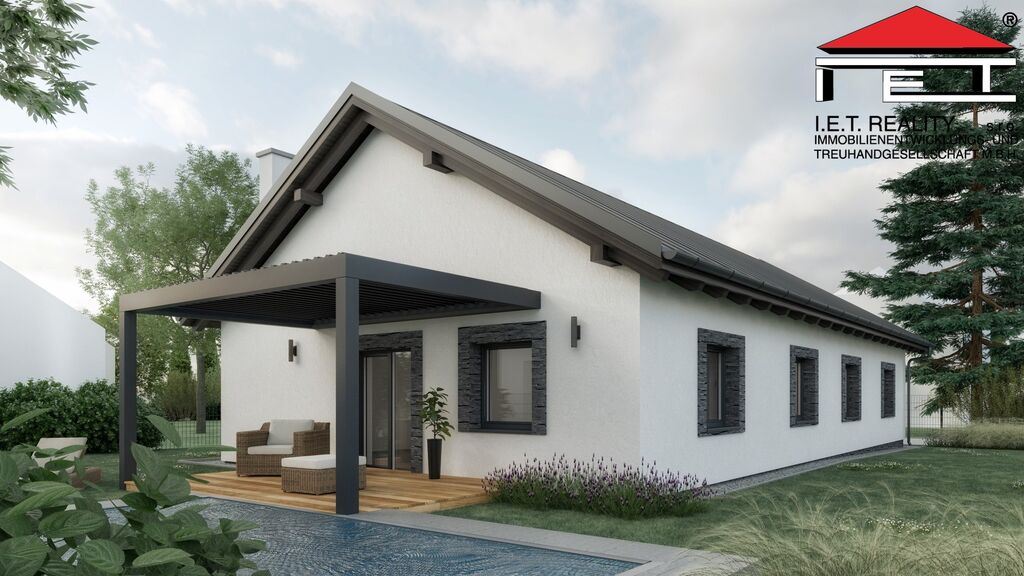 Dispozice domu je velmi praktická – středem domu vede chodba, ze které se vstupuje do technické místnosti, WC, koupelny a jednotlivých pokojů. Chodba ústí do prostorného obývacího pokoje s kuchyňským koutem a vstupem na terasu.