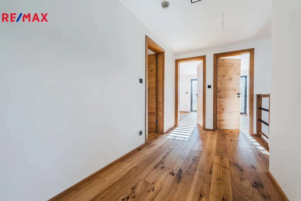 Patro: čtyři útulné ložnice + prostorná pracovna (43,8 m²) a koupelna