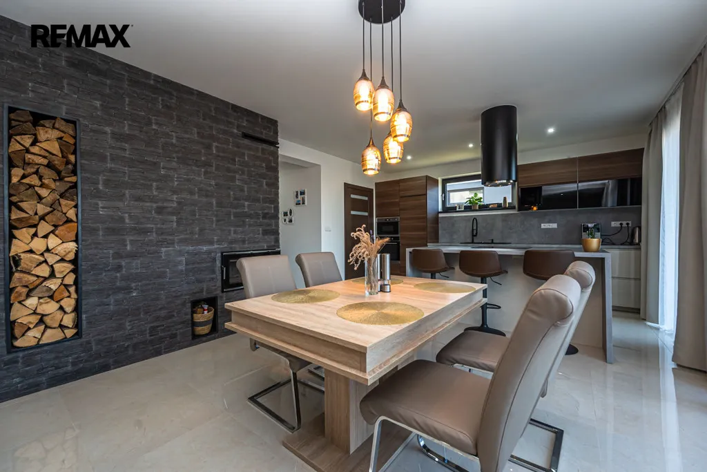 Dům má nadstandardní prvky, schodiště obloženo z bukového dřeva s el. podsvícením, klimatizaci, tlaková kanalizace, bezpečnostní vstupní dveře a kamerový systém, plastové okna trojsklo 6 komorové. Dům má tři možnosti vytápění, který zajišťuje kvalitní plynový kotel, klimatizace a krb je vybaven ventilační jednotkou která rozvádí ohřátý vzduch po domě. V celém přízemí je podlahové vytápění. Dům zůstane částečně zařízený.