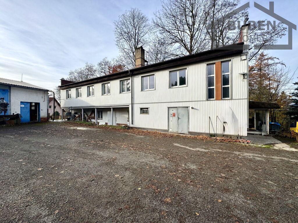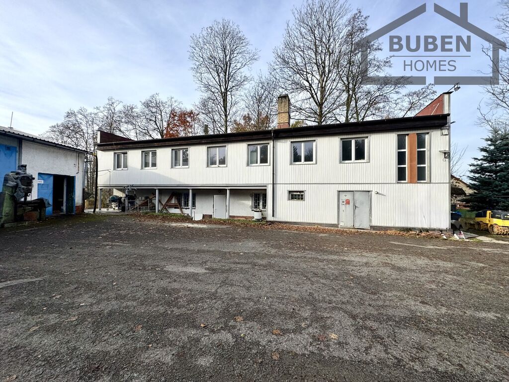 Hlavní budova občanské vybavenosti o užitné ploše 242 m2, může sloužit jako kancelářské zázemí. V přízemí je k dispozici umývárna, WC, šatny, jídelna, sklad a kuchyňka. V patře se nachází 3 kanceláře, zasedací místnost, kuchyňka a sociální zázemí. Objekt je napojen na veškeré inženýrské sítě (veřejný vodovod, kanalizaci, plyn a elektrickou energii). Vytápění budovy je ústřední s plynovým kotlem. Tato budova je z převážné části po rekonstrukci. Dále se na pozemku nachází výrobní hala o zastavěné ploše 536 m2, tako hala není vytápěná. Další objekt v areálu jsou garáže o zastavěné ploše 90 m2 a dílny (vedeny na KN jako garáže) o užitné ploše 210 m2. Většina plochy areálu je zpevněná.