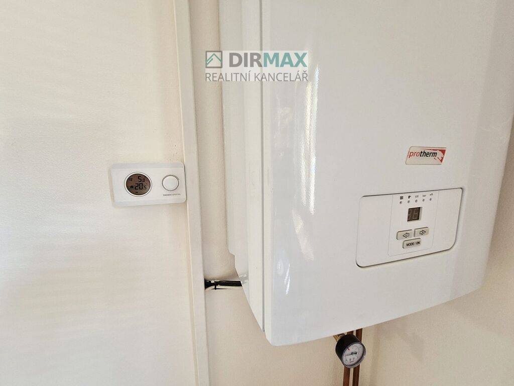 Vytápění je řešeno elektrickým kotlem, ohřev vody pomocí bojleru.