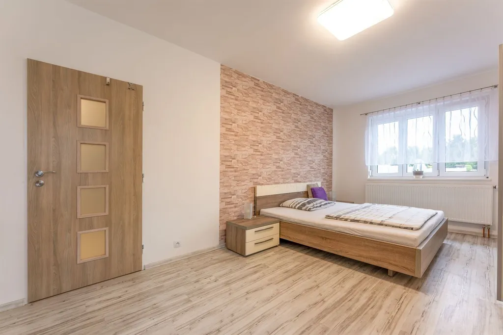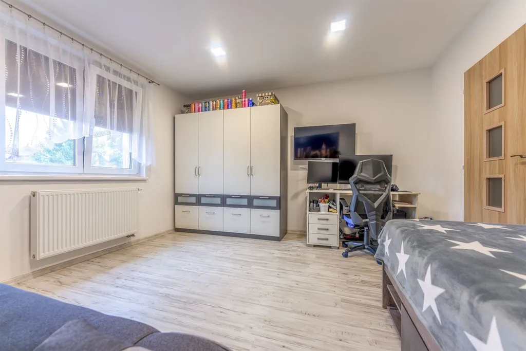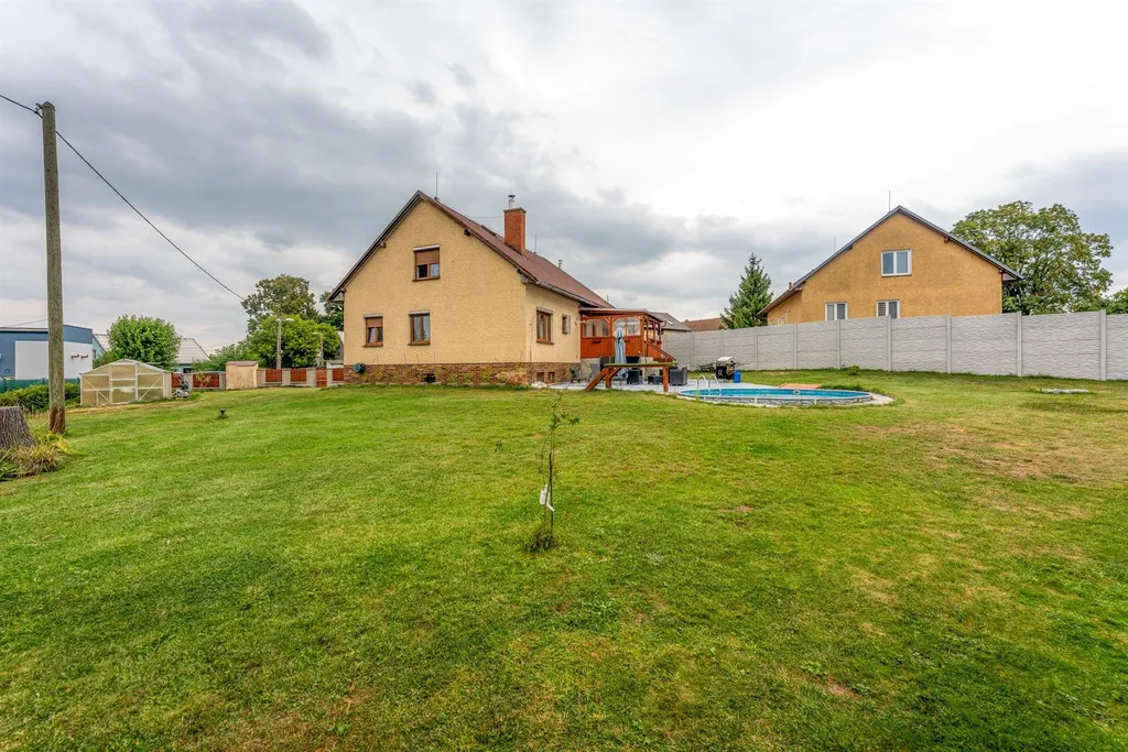 Rodinný dům je dispozičně řešen jako 5+kk a je ideální volbou pro rodinné bydlení. V přízemí domu se nachází zádveří, předsíň, prostorný obývací pokoj s jídelním koutem, kuchyň, dva pokoje, koupelna s toaletou a komora. Z obývacího pokoje je dále vstup na zastřešenou terasu a udržovanou zahradu s bazénem a zahradním domkem. V prvním patře se nachází dva pokoje a je zde k dispozici další koupelna s toaletou. Zároveň zde nalezneme přípravu na kuchyňskou linku a prostor, kde by bylo možné zrealizovat kuchyňský kout a tím zajistit možnost pro dvougenerační bydlení.