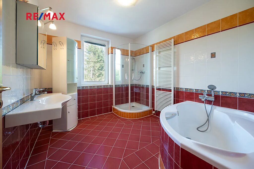 Topení a ohřev vody je zajištěn tepelným čerpadlem a v případě velkých mrazů je k dispozici i plynový kotel. Garáž není součástí pronájmu.
